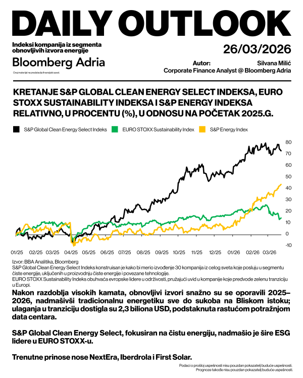 Privredni rast Srbije u 2026. iznosiće oko 3,5 odsto, a zatim će dodatno ubrzati u 2027, kako investicije povezane sa Expom budu jačale, očekuju analitičari Bloomberg Adrije.