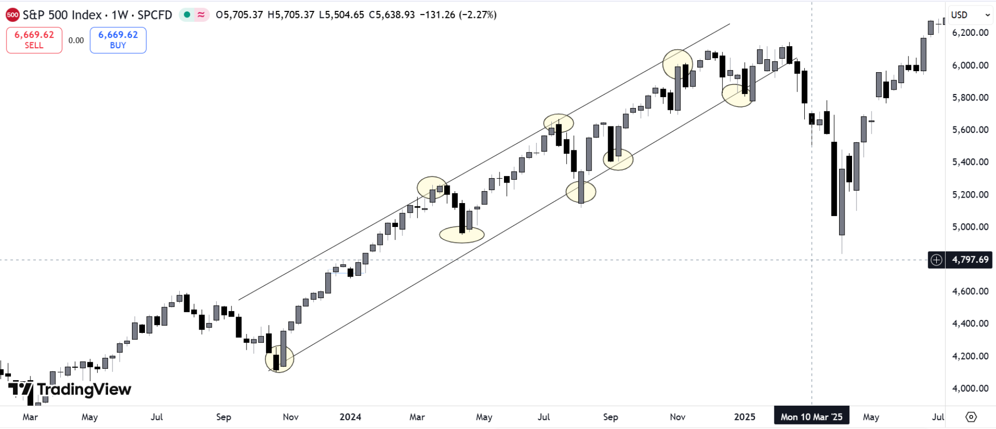 Povlačenjem linije koja povezuje ove tačke investitori pokušavaju da identifikuju ključne nivoe podrške ili otpora i procene da li tržište nastavlja postojeći trend ili pokazuje znake promene.