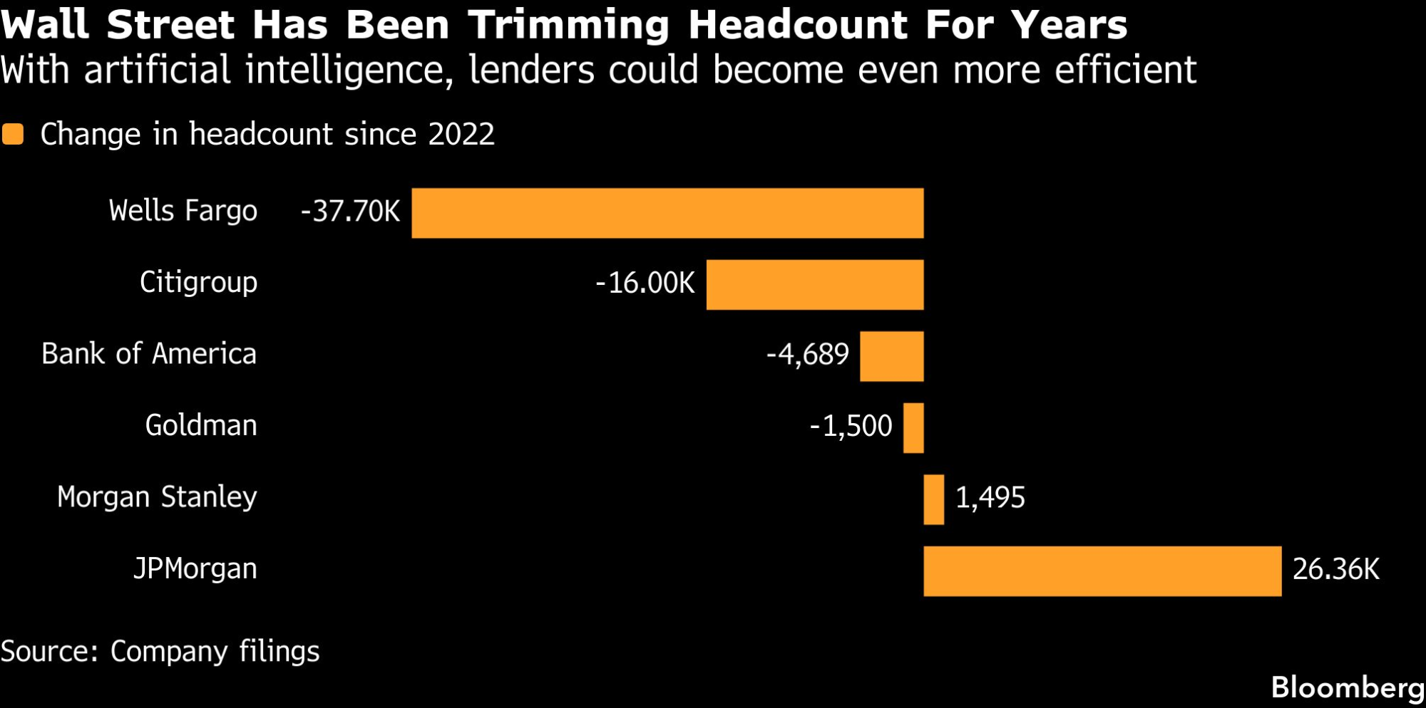Najveći deo smanjenja dogodio se u Wells Fargo & Co., koji je smanjio broj zaposlenih za 4.199 u prva tri meseca godine, a prate ga Citigroup Inc. sa 2.000 i Bank of America Corp. sa 1.073 radna mesta. JPMorgan Chase & Co. i Morgan Stanley su povećali broj zaposlenih.