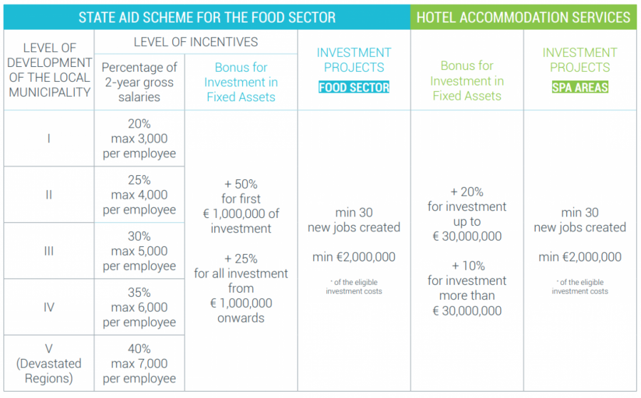 Podsticaji za zapošljavanje (finansijska podrška za otvaranje novih radnih mesta, uključujući subvencije za zarade, obuke i druge troškove povezane sa zapošljavanjem; za nove zaposlene postoji oslobađanje od plaćanja doprinosa na određeni period, što dodatno smanjuje troškove rada);