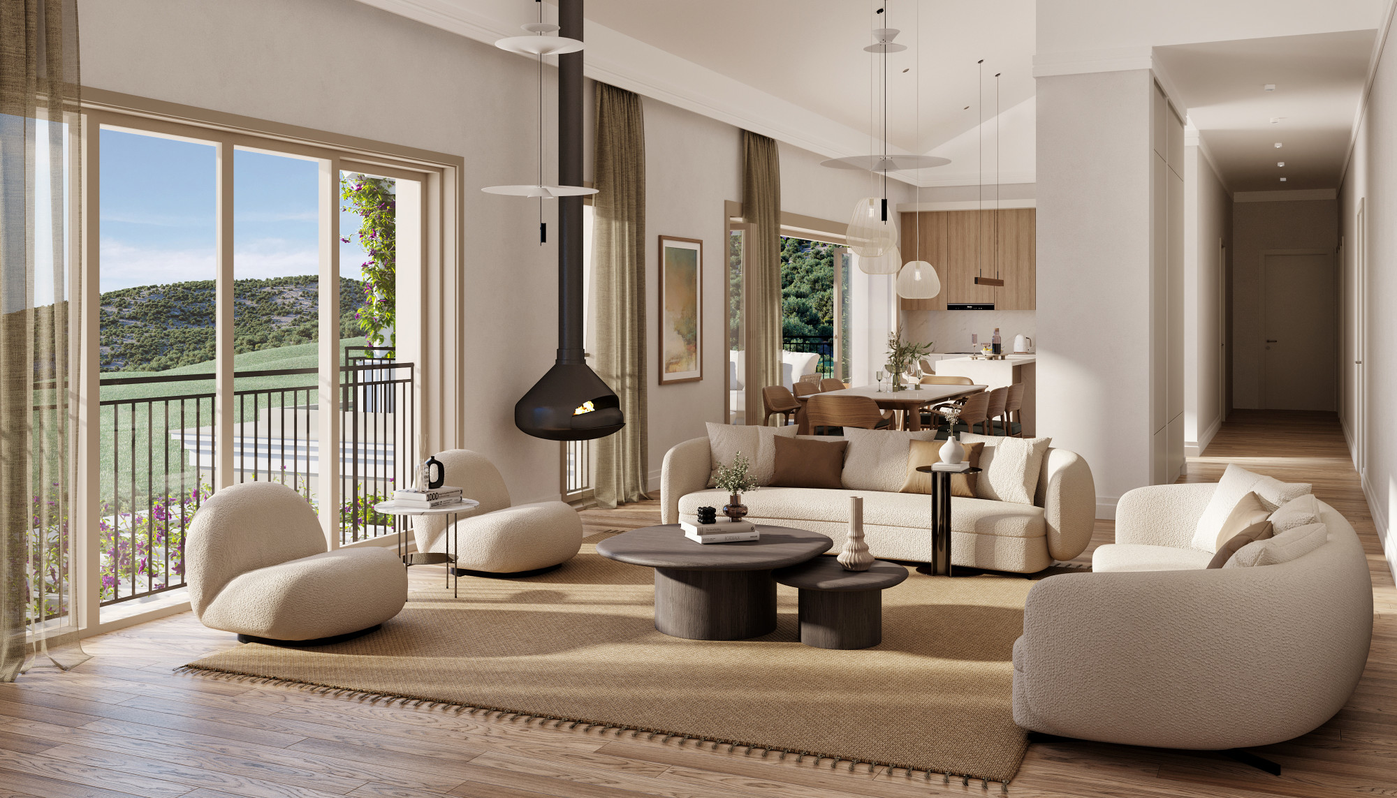 Enterijeri Heights rezidencija osmišljeni su tako da pruže osećaj lakoće i harmonije. Svetli tonovi, prirodne teksture i tople boje dominiraju enterijerima, dok veliki prozori i terase sa lukovima uokviravaju pogled na Jadran. Svaki kvadrat je pažljivo iskorišćen, sa ugradnim ormarima, Nolte kuhinjama, podnim grejanjem u kupatilima i diskretnom kanalnom klimatizacijom, za savremen život koji ne prihvata kompromise.