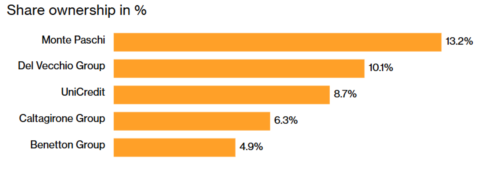 Generali, koji trenutno vredi oko 58 milijardi evra (68 milijardi dolara), dugo je u centru različitih pokušaja sklapanja poslova i uspešnih i neuspešnih, zbog svoje dominantne pozicije u štednji za penziju i osiguranju. Pored UniCredita, njegovi najveći investitori su Banca Monte dei Paschi di Siena SpA, porodica Del Vecchio, građevinski tajkun Francesco Gaetano Caltagirone i porodica Benetton.
