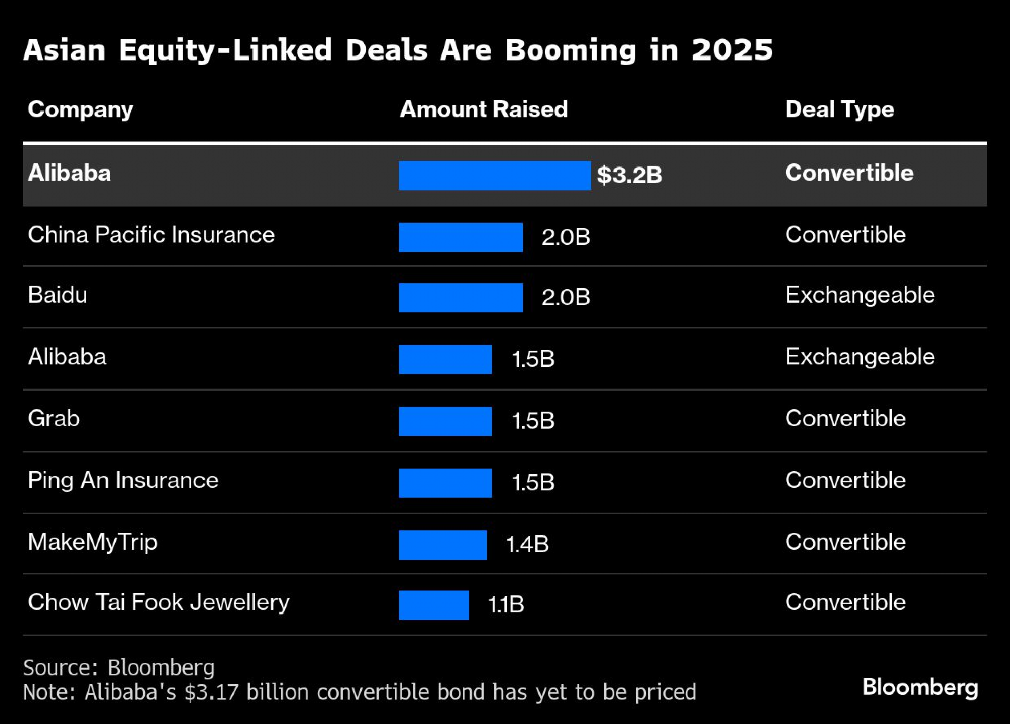 Alibaba je prošle godine prikupila pet milijardi dolara kroz konvertibilne obveznice, što je tada bio rekord za emisiju denominovanu u dolarima od jedne azijske kompanije. U julu je prikupila 12 milijardi hongkonških dolara prodajom obveznica koje se mogu zameniti za akcije svoje podružnice Alibaba Health Information Technology Ltd.