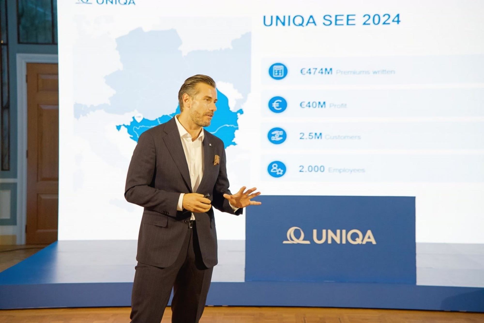 Danas, UNIQA SEE ima skoro 2,5 miliona klijenata, zapošljava 2.000 ljudi i ostvaruje preko 464 miliona evra bruto premija, što predstavlja rast od 14,6 odsto na godišnjem nivou.