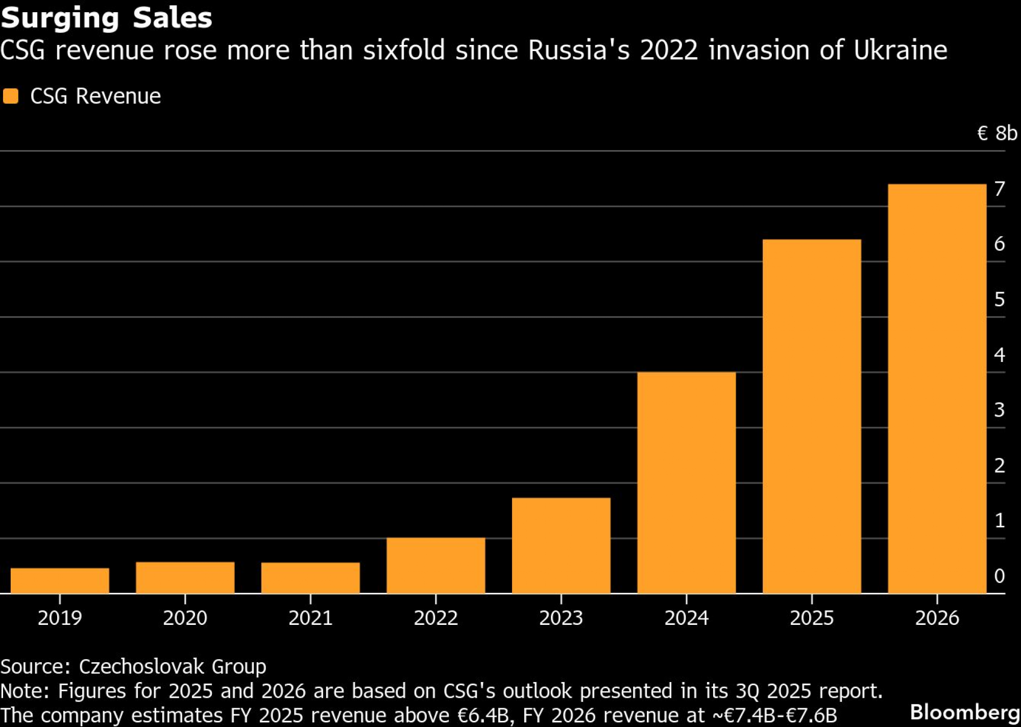 Jedan od pokretača prihoda CSG-a bila je inicijativa češke vlade da nabavi artiljerijske granate za Ukrajinu. To je pomoglo kompaniji da zabeleži najveći procentualni rast prihoda od prodaje oružja među 100 najvećih odbrambenih firmi u 2024, prema podacima koje je ovog meseca objavio Stockholm International Peace Research Institute.