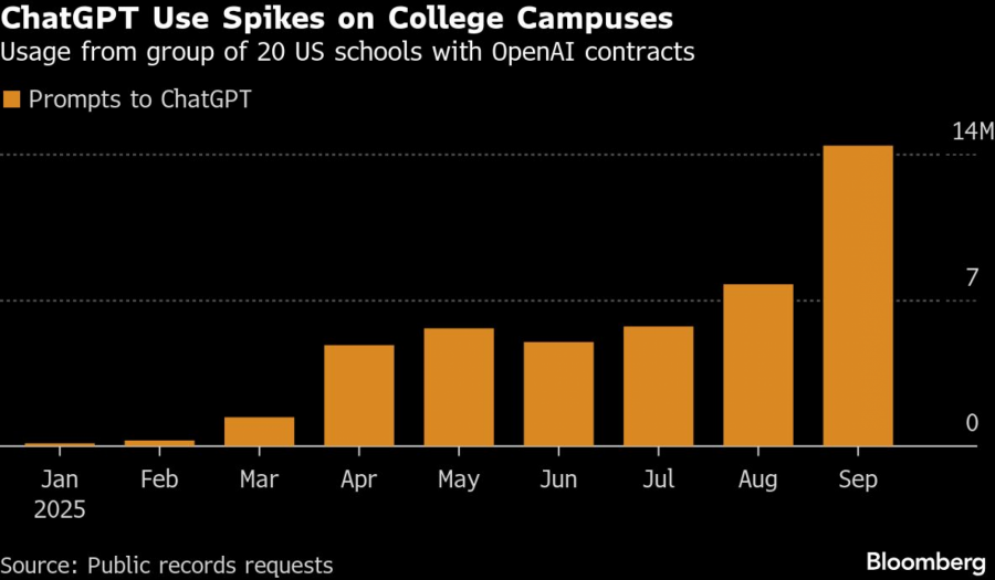 Usvajanje ChatGPT-ja na kampusima odvijalo se brzo. Studenti i nastavnici koristili su ga više od 14 miliona puta u septembru, pokazuju podaci sa 20 kampusa koji imaju ugovore sa OpenAI-jem. U proseku, svaki korisnik se tog meseca oslanjao na ChatGPT 176 puta, za zadatke poput pisanja, istraživanja i analize podataka.
