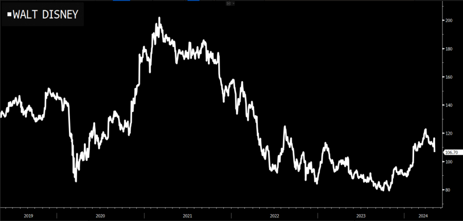Deonice Disneyja porasle su 17 odsto od početka 2024, ali i dalje su daleko od vrhunca iz 2021. (Bloomberg)