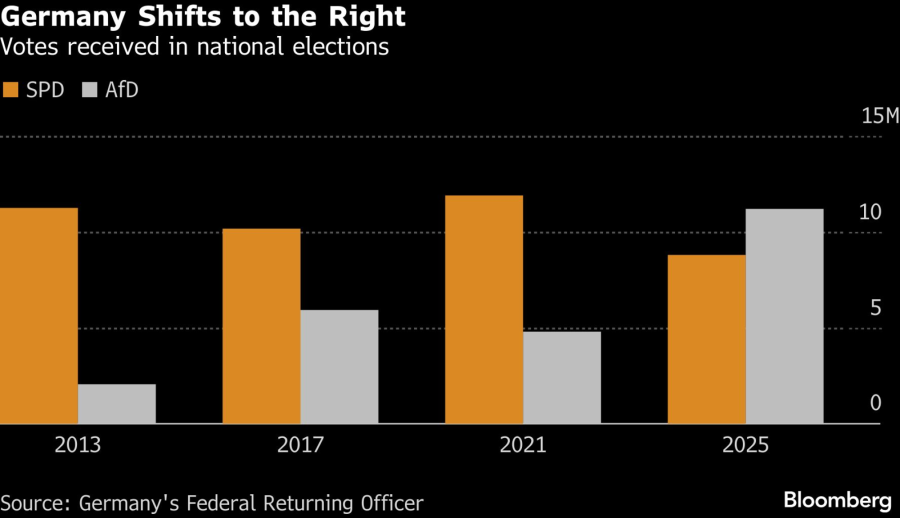Ta povezanost oslabila je nakon ujedinjenja Nemačke 1990. godine, a članstvo u sindikatima gotovo se prepolovilo u odnosu na to vreme. Današnja istraživanja pokazuju da kvalifikovani radnici podržavaju krajnje desničarsku Alternativu za Nemačku (AfD) u procentima koji su znatno iznad nacionalnog proseka. To se poklapa sa trendom pomeranja radničke klase ka desnici u SAD, Francuskoj i drugim razvijenim zemljama. U martu se održavaju izbori za pokrajinski parlament u Baden-Virtembergu, sedištu Mercedesa i Porschea, a bilo kakav uspeh Zentruma mogao bi da oteža napore kancelara Friedricha Merza da održi stabilnost.