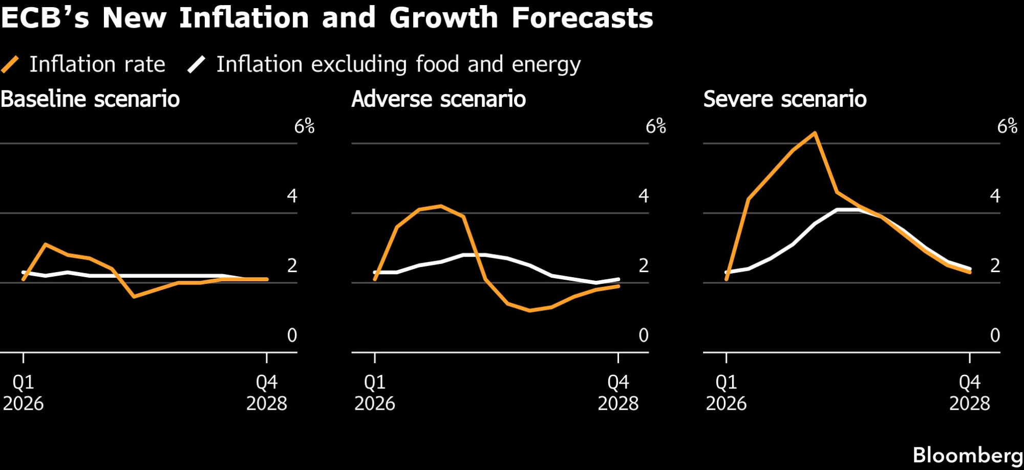 Nove projekcije ECB pokazuju da će potrošačke cene u evrozoni ove godine porasti za 2,6 odsto u osnovnom scenariju, znatno više nego što se ranije mislilo. U ekstremnom scenariju, gde poremećaji u snabdevanju naftom i prirodnim gasom potraju, inflacija bi dostigla 6,3 odsto.