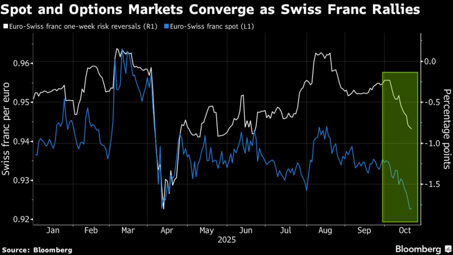 Troškovi zaštite porasli su na najviši nivo od sredine avgusta, pri čemu je premija za kupovinu opcija koje daju izloženost jačanju franka ponovo dostigla nivoe iz juna, dok trgovci traže zaštitu i mogućnost zarade na daljim kretanjima kursa.