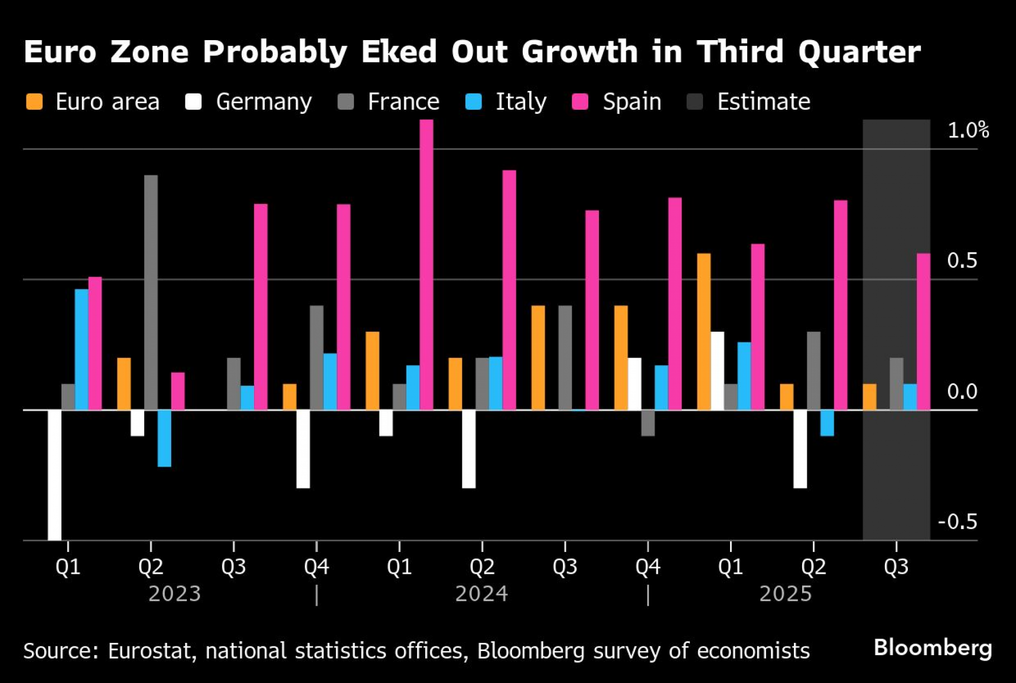 Analitičari očekuju da će blok zadržati skroman rast od 0,1 odsto, ostvaren u prethodna tri meseca zaključno s junom. Nacionalni izveštaji iz nekih od najvećih ekonomija regiona dodatno će osvetliti situaciju.
