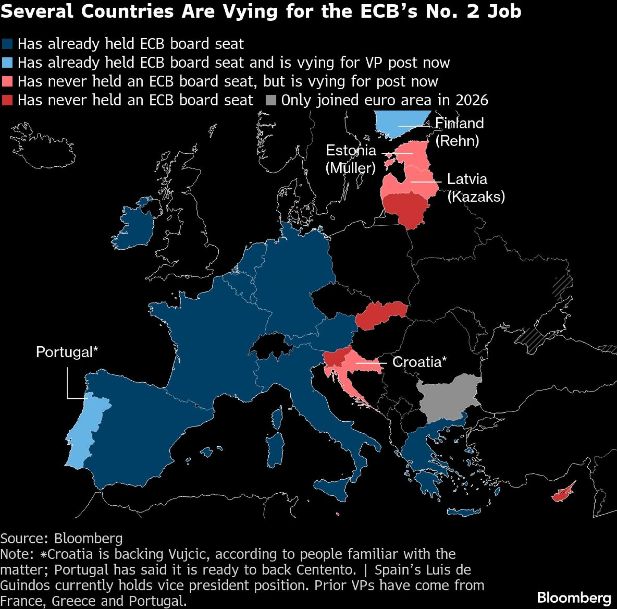Kandidati iz Estonije, Letonije i Hrvatske su u trci da naslede potpredsednika Luisa de Guindosa, koji odlazi u maju. Čak i ako ne uspeju, još tri mesta u šestoročlanom Izvršnom odboru biće upražnjena do kraja 2027. godine.