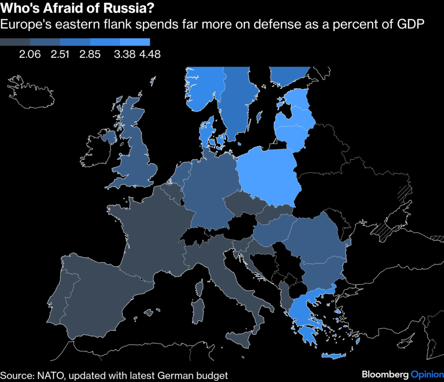 Umesto toga, Evropa pokušava da se nekako provuče, sa skromnim rezultatima. Više od desetine već nedovoljnog fonda EU "Security Action for Europe" od 150 milijardi evra, namenjenog podsticanju zajedničkih nabavki, verovatno će završiti kod proruski orijentisane vlade Mađarske, praktično kao mito da bi se obezbedila jednoglasnost koju zahtevaju pravila Unije. EU i Ujedinjeno Kraljevstvo nisu uspeli da se dogovore ni o uslovima britanskog učešća. Zemlje severoistočne Evrope ostvarile su izvestan napredak u udruživanju resursa, ali ne mogu i ne treba same da nose celokupan teret odbrane.