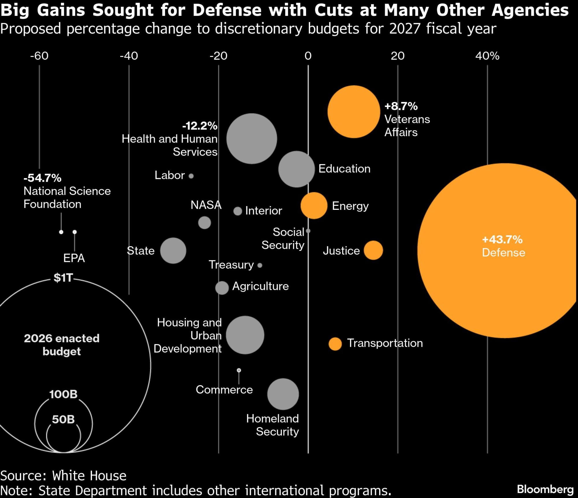 Predsednik SAD, Donald Trump, zatražio je od Kongresa da usvoji budžet od 2,2 biliona dolara za diskrecione programe, uz veliko povećanje izdvajanja za odbranu, dok je ponovo insistirao na oštrim rezovima kada je reč o domaćim programima (agencijama).