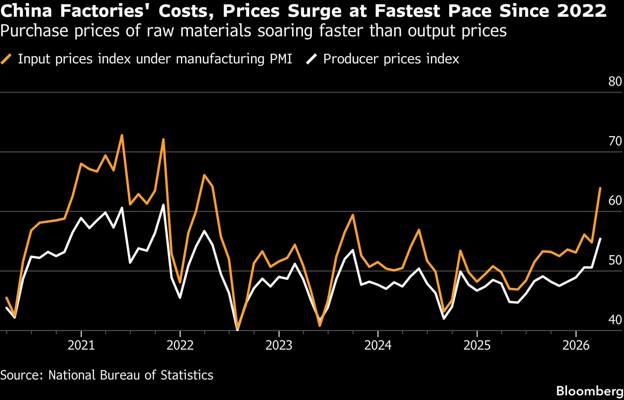 Kineske fabrike zabeležile su veliki skok ulaznih troškova iako je njihova proizvodnja porasla prvi put ove godine, što je jedan od prvih opipljivih znakova uticaja konflikta na Bliskom istoku na profit. Kineske kompanije zabeležile su najbrži rast cena sirovina i proizvoda u poslednje četiri godine, pokazuju podaci Nacionalnog biroa za statistiku.