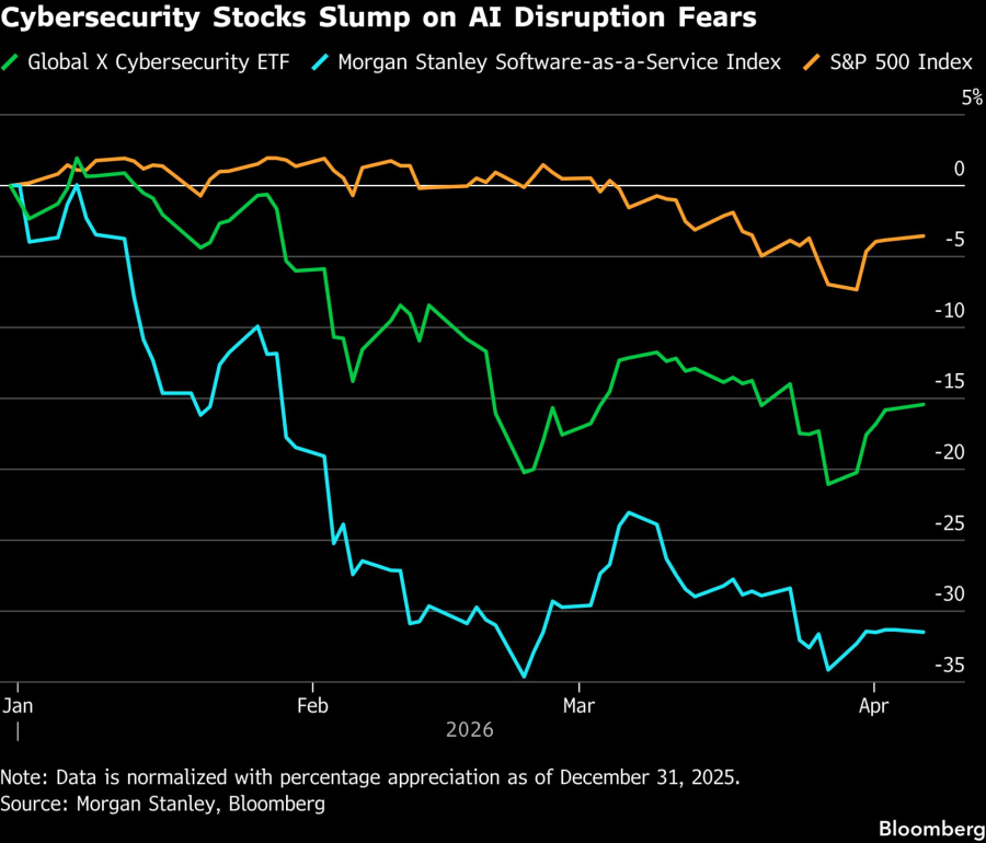 Proizvođači softvera za sajber bezbednost takođe su osetili taj pesimizam. Global X Cybersecurity ETF pao je 15 odsto u 2026. i nedavno je zatvoren na najnižoj ceni od novembra 2023. Iako je to bolje od pada od 32 odsto u indeksu posvećenom softveru kao usluzi, i dalje je znatno lošije od pada od 3,4 odsto u S&P 500 Index i pada od 4,8 odsto u tehnološki orijentisanom Nasdaq 100 Index ove godine.