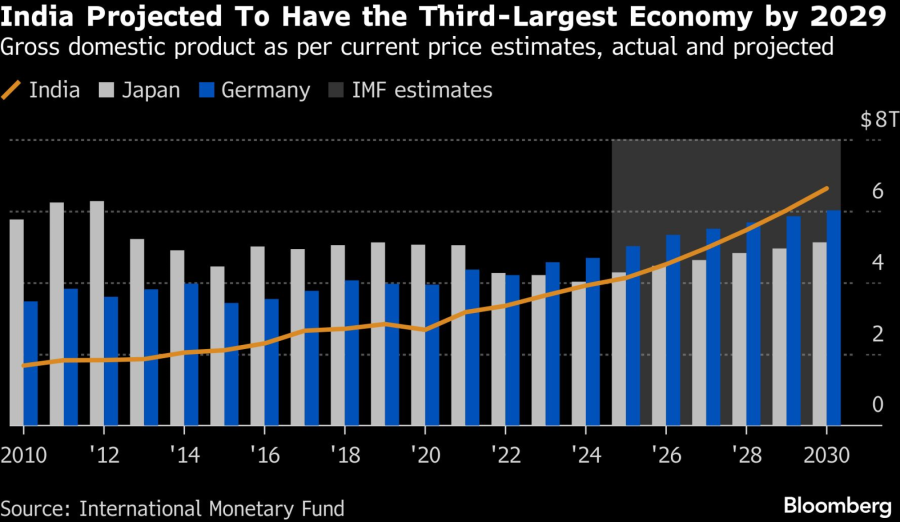 Godinama je Indija peta najveća ekonomija na svetu, iza SAD, Kine, Nemačke i Japana. Sada se približava Japanu, uz podršku svoje relativno mlade populacije od 1,4 milijarde ljudi, ali i zbog smanjenja japanske ekonomije izražene u dolarima.