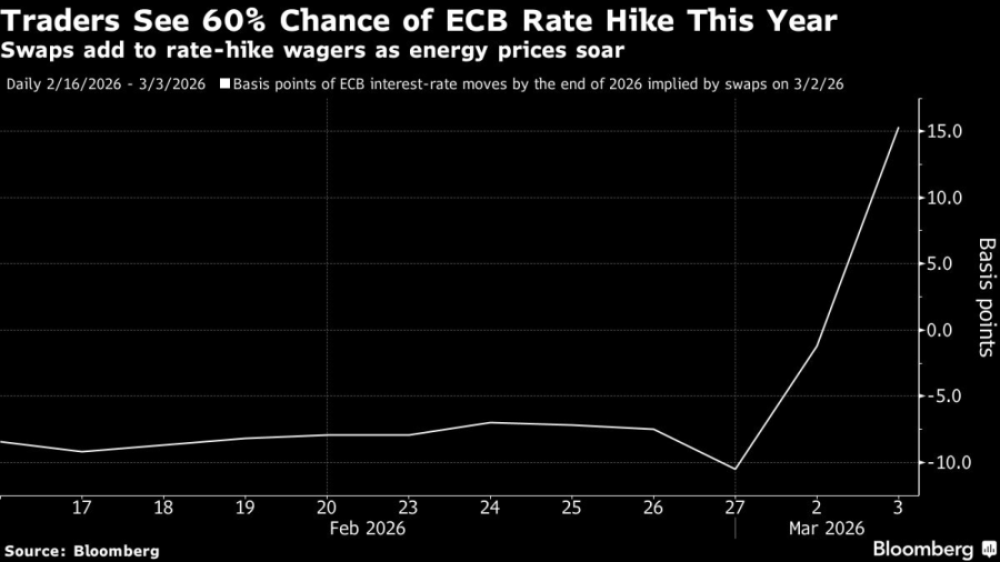 Izgledi za novi talas inflacije naveli su trgovce da procene da postoji više od 60 odsto verovatnoće da će Evropska centralna banka ove godine podići kamatne stope. Još u petak su šanse za smanjenje iznosile 40 odsto. Prinosi u Velikoj Britaniji dostigli su najviši nivo od decembra.