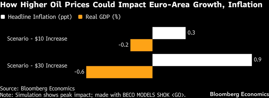 Pozivajući se na akademske studije i iskustva iz ranijih poremećaja u snabdevanju, Bloomberg Economics procenjuje da pad ponude od jedan odsto podiže cenu za oko četiri odsto.