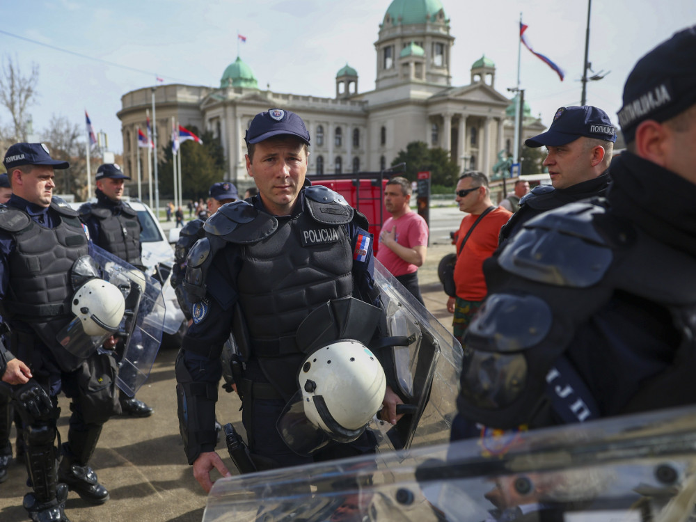 Policijska brigada za razbijanje demonstracija došla je ispred Skupštine Srbije gde su okupljeni građani u znak podrške Dijani Hrki, majci mladića Stefana Hrke poginulog u padu nadstrešnice 1. novembra 2024. na železničkoj stanici u Novom Sadu, prenosi Beta.