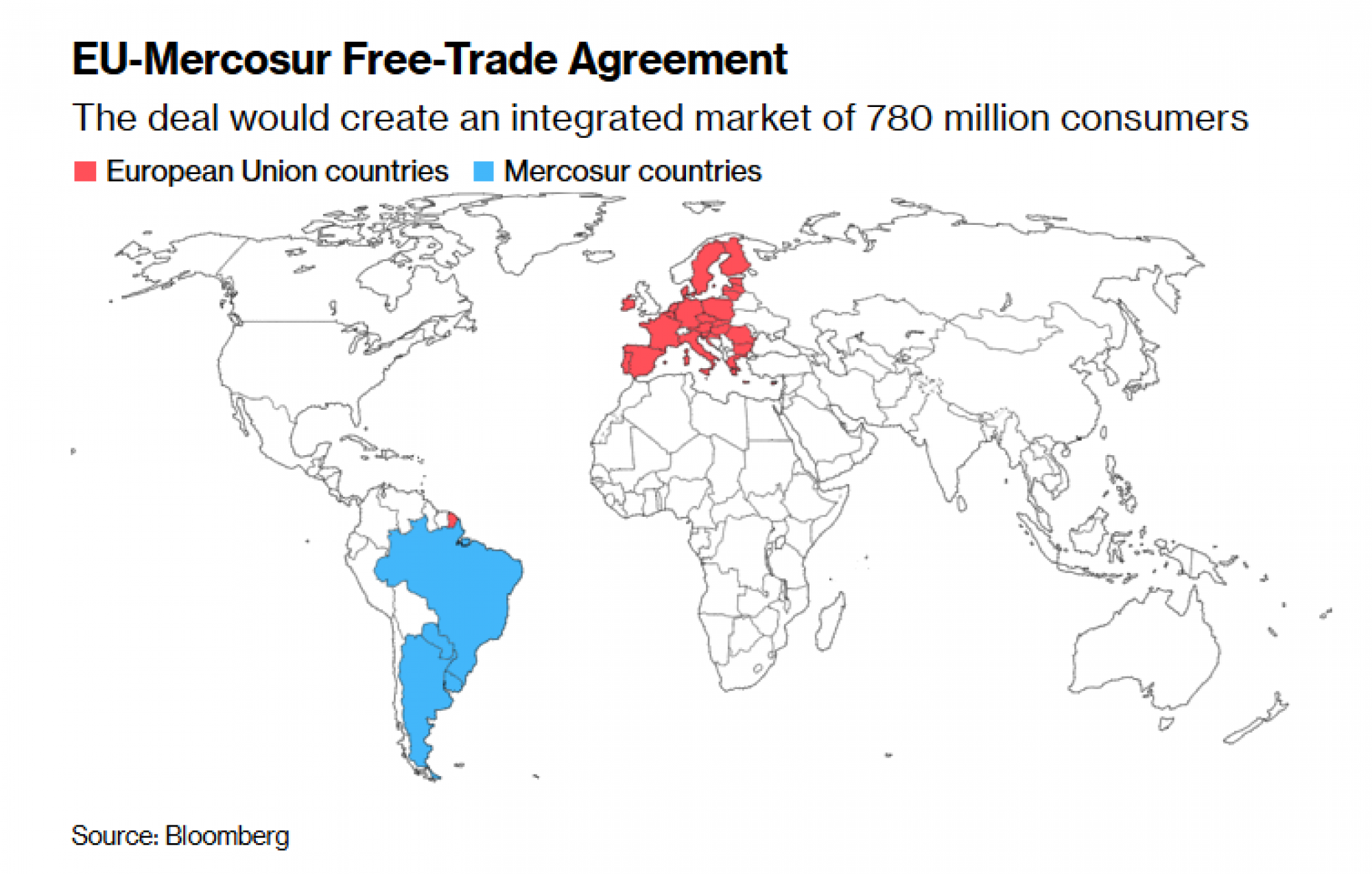 Trgovinski sporazum EU–Mercosur mogao bi da pomogne Evropi da se izvuče iz pogoršanih odnosa sa SAD i Kinom. Sporazum bi stvorio integrisano tržište od 780 miliona potrošača, postepeno ukinuo carine na robu uključujući automobile i omogućio Evropi lakši pristup ogromnoj poljoprivrednoj industriji i resursima Mercosura.