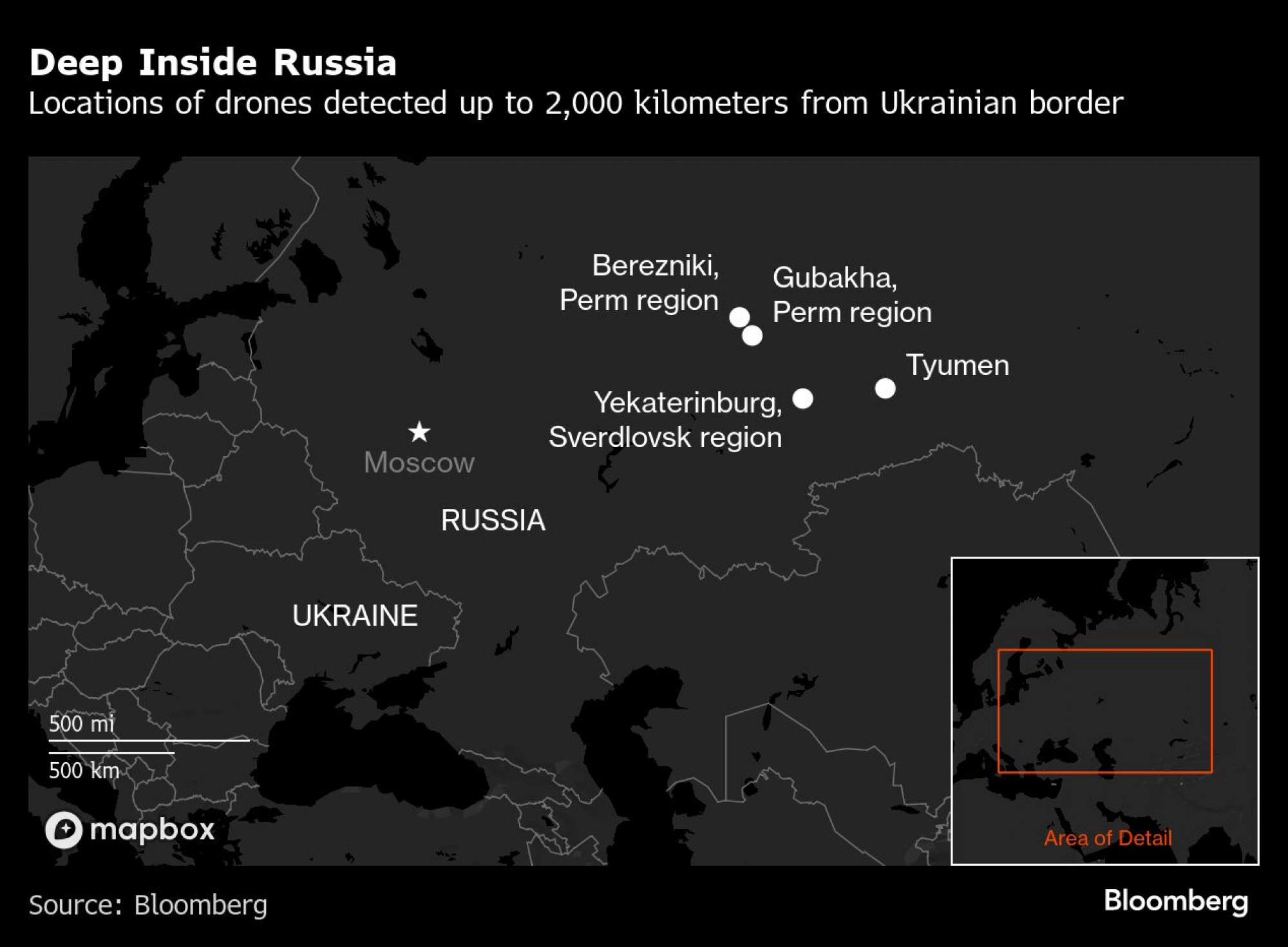 Lokacije dronova otkrivene do 2.000 kilometara od ukrajinske granice | Bloomberg