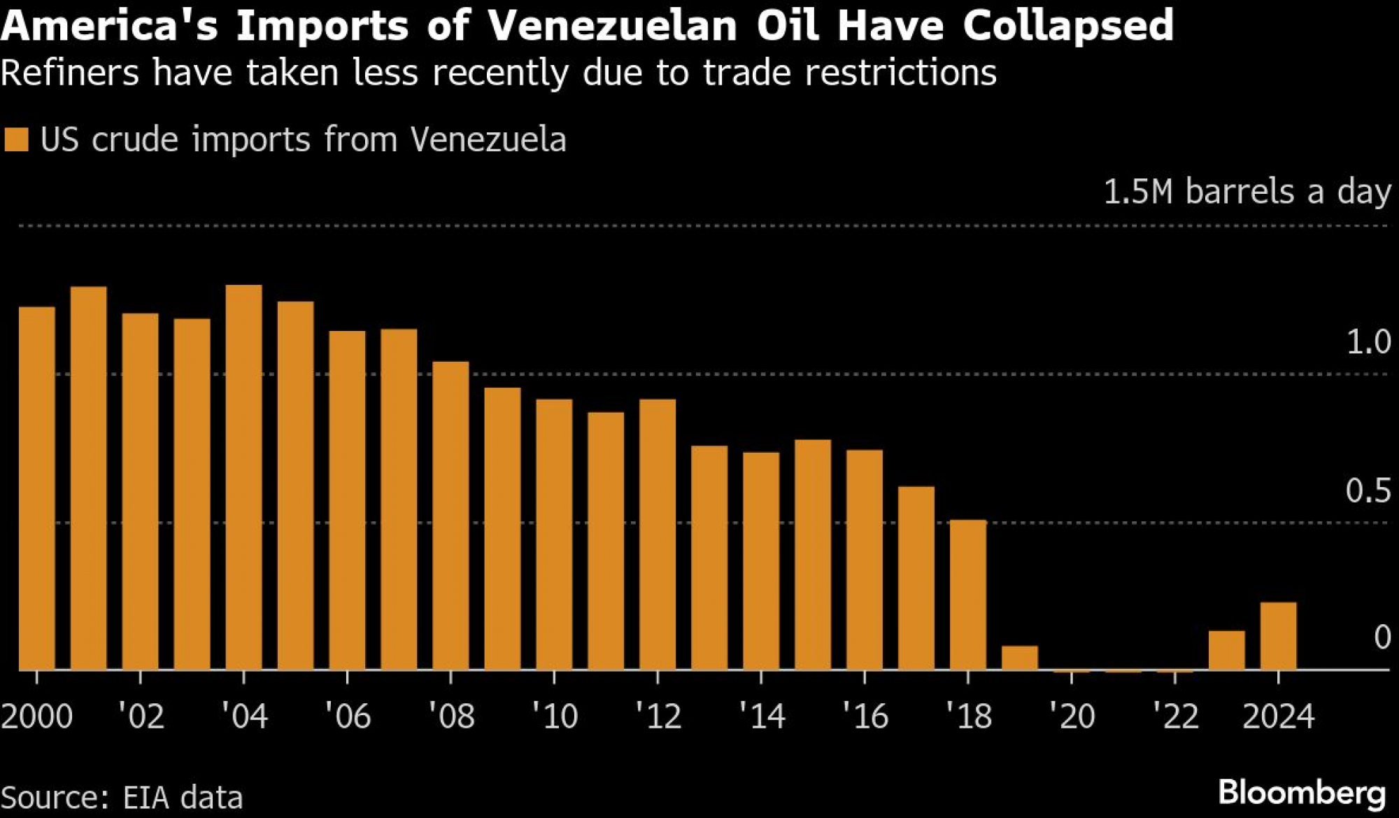 Venecuela raspolaže najvećim dokazanim rezervama sirove nafte na svetu, ali je proizvodnja naglo opala zbog decenija zanemarivanja i odlaska brojnih stranih naftnih kompanija. Zemlja sada učestvuje sa manje od jedan odsto u globalnoj ponudi. Analitičari navode da će biti potrebne godine i milijarde dolara ulaganja da bi se proizvodnja značajno oporavila.