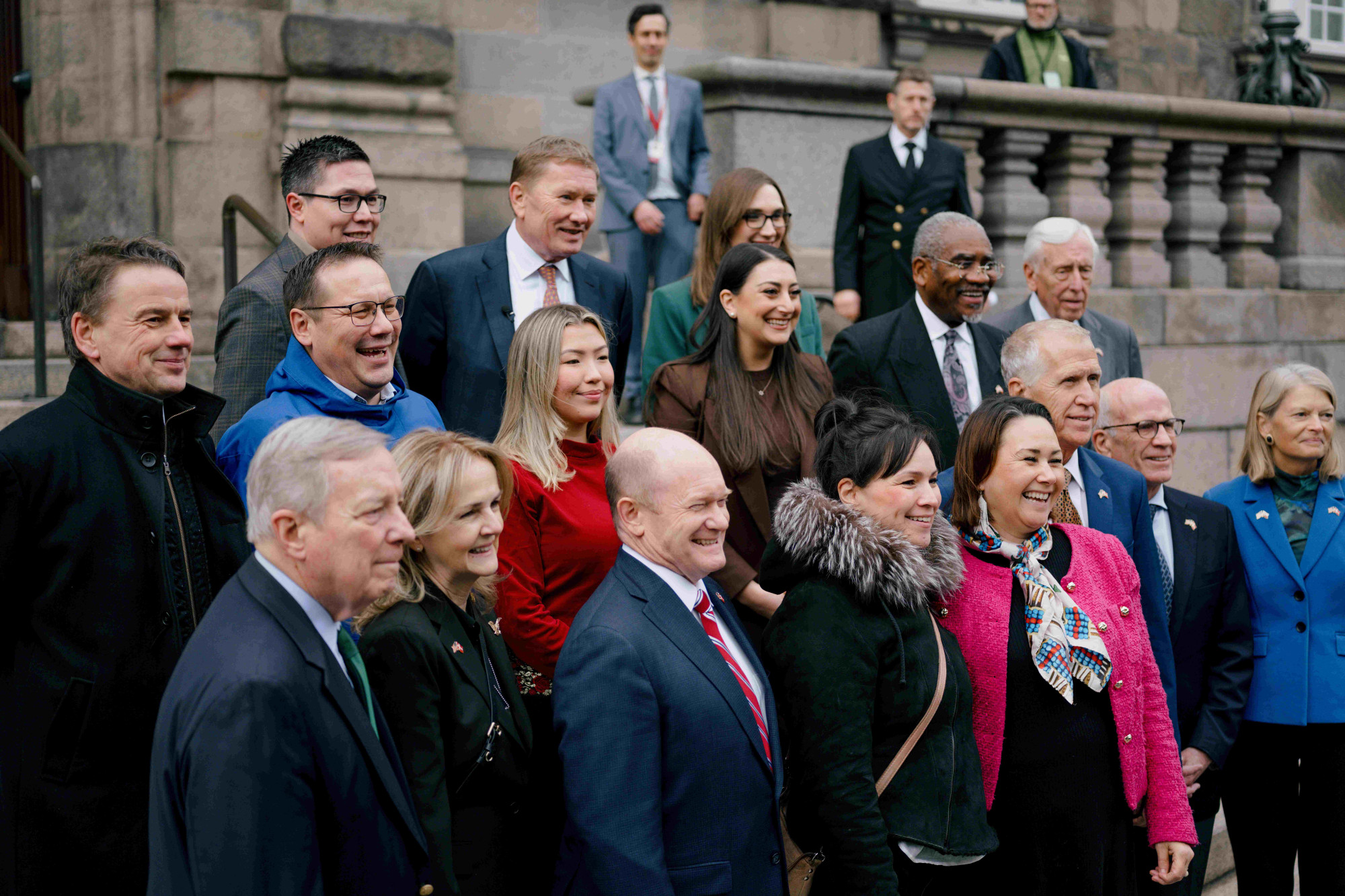 Dvostranačku, dvodomnu kongresnu delegaciju činili su i republikanski senator iz Severne Karoline Thom Tillis, kao i demokratski senator iz Ilinoisa Dick Durbin. Među učesnicima su bili i predstavnici Donjeg doma: Gregory Meeks, demokrata iz Njujorka, Madeleine Dean, demokrata iz Pensilvanije, Sara Jacobs, demokrata iz Kalifornije i Sarah McBride, demokrata iz Dalavera.