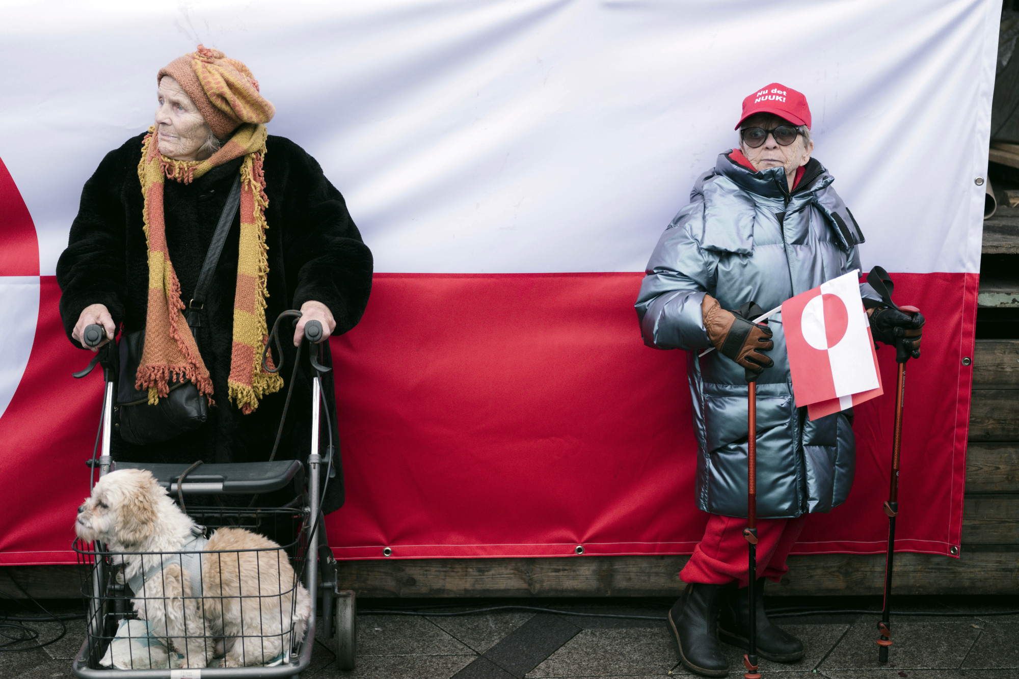 Bente Hegelund, rođena na Grenlandu od grenlandske majke i danskog oca, došla je na protest noseći grenlandsku zastavu kako bi pokazala podršku svojoj zajednici.