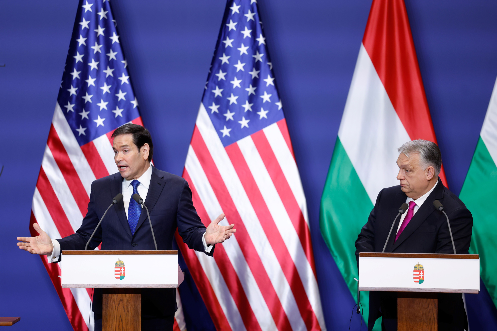 "Ako se suočite sa finansijskim problemima, ako se suočite sa stvarima koje su prepreke rastu, ako se suočite sa stvarima koje ugrožavaju stabilnost vaše zemlje, znam da će predsednik Trump biti veoma zainteresovan zbog vašeg odnosa sa njim i zbog važnosti ove zemlje za nas, da pronađe načine da pruži pomoć ako se taj trenutak ikada desi", rekao je Rubio na konferenciji za novinare sa Orbanom, dodajući da je došlo "zlatno doba" američko-mađarskih odnosa te da je bilo 17 velikih američkih investicija otkako je Trump stupio na dužnost, preneo je Reuters .