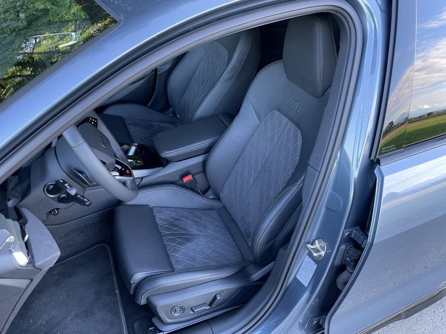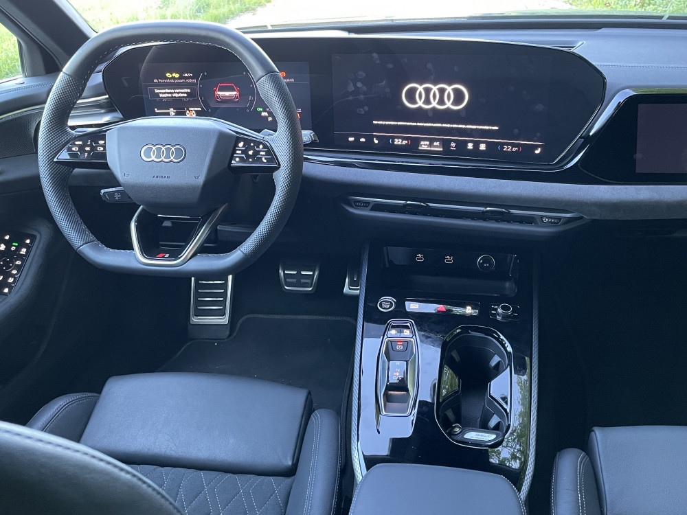 Preciznost izrade, kao i izbor materijala u kabini, po standardu Audija, vrhunski su i filigranski. Koža, alkantara, aluminijumski umeci i crna klavirska plastika dominiraju estetski minimalističkim okruženjem za vozača i putnike, koje je sa aspekta ergonomije tipično germanski promišljeno.