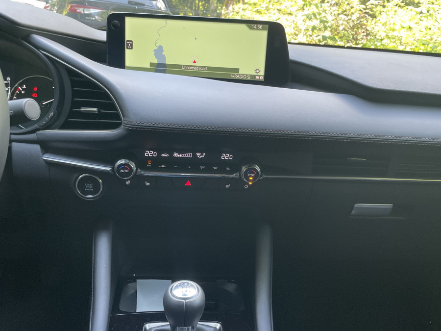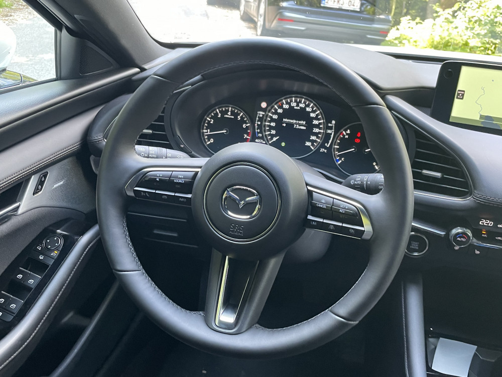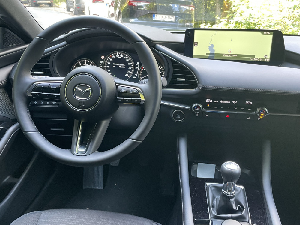 Radni prostor vozača je promišljeno uzdržan i kabina nije izložba multifunkcionalnih ekrana. Pored merača, na sredini je postavljen pravougaoni ekran od skromnih 25 centimetara, kojem upravljamo preko legendarnog Mazdinog rotacionog dugmeta na centralnoj konzoli. Ispod njega je još manji i uži prikaz funkcija automatske dvopodručne klime; i to je sve što se tiče digitalizacije.