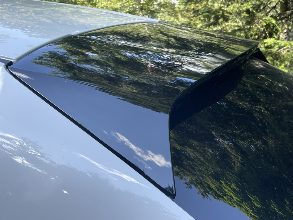 Prednja maska, poput morskog psa sa raširenim čeljustima, još je oštrije oblikovana, dok se bočna linija visoko i strmo uzdiže ka zadnjem delu. Zadnji kraj krasi usko staklo na prtljažnim vratima i izdužene LED svetlosne grupe, ispod kojih dominiraju dve izduvne cevi, minimalistički oblikovane. Crno-bela kombinacija boja testnog modela idealan je izbor jer otkriva sve pomenute oblikovne detalje.