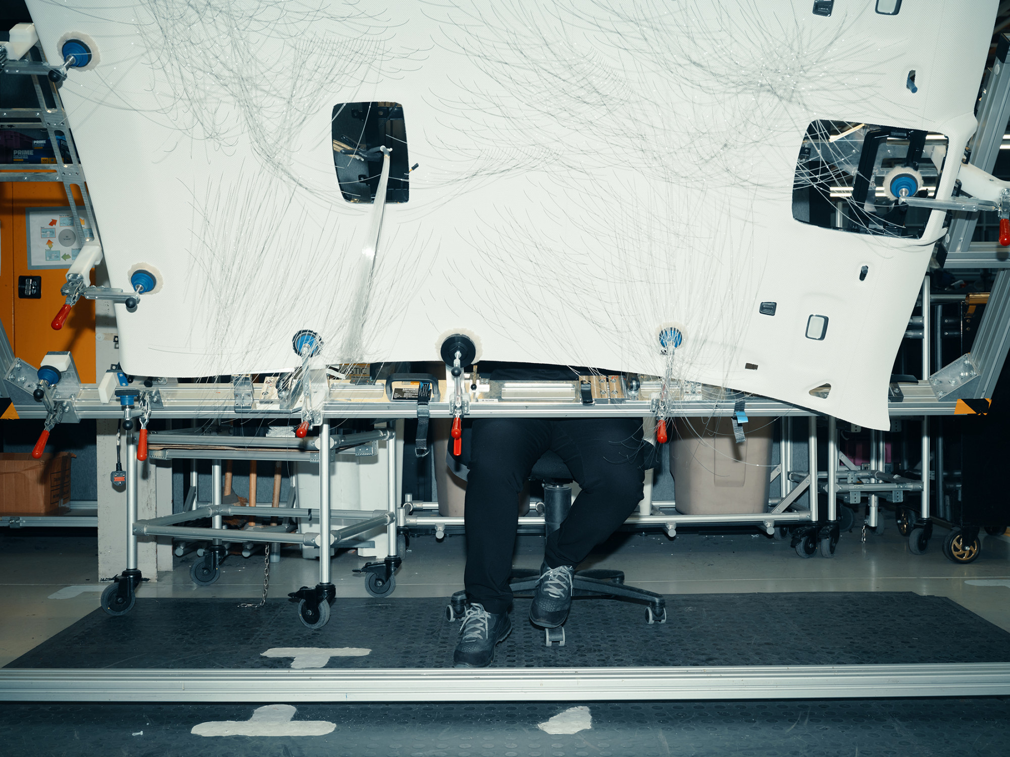 Tehničar postavlja optičke kablove u personalizovani Starlight Headliner| Murray Ballard/Bloomberg
