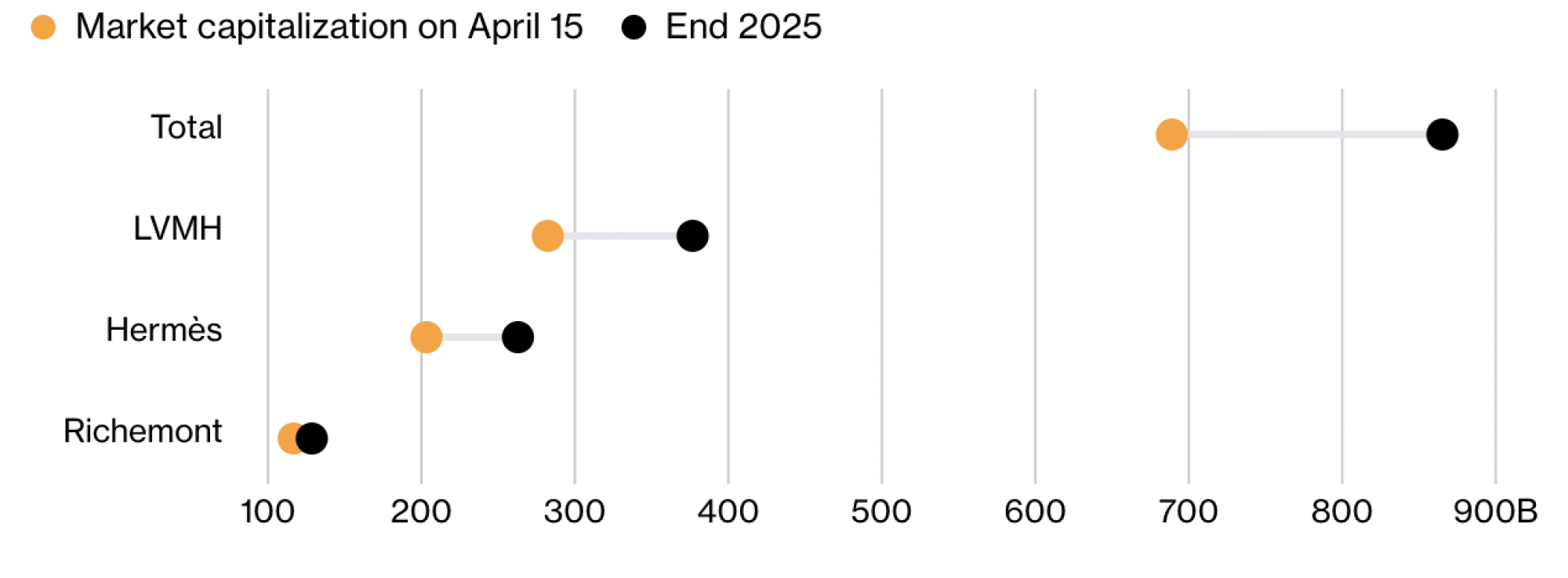 Deset najvećih evropskih luksuznih kompanija izgubilo je oko 176 milijardi dolara tržišne kapitalizacije od početka godine, prema podacima koje je prikupio Bloomberg. LVMH, kao ključni indikator industrije, čini gotovo 100 milijardi dolara tog gubitka. Poređenja radi, širi indeks Stoxx 600 u istom periodu beleži rast od 4,6 odsto.