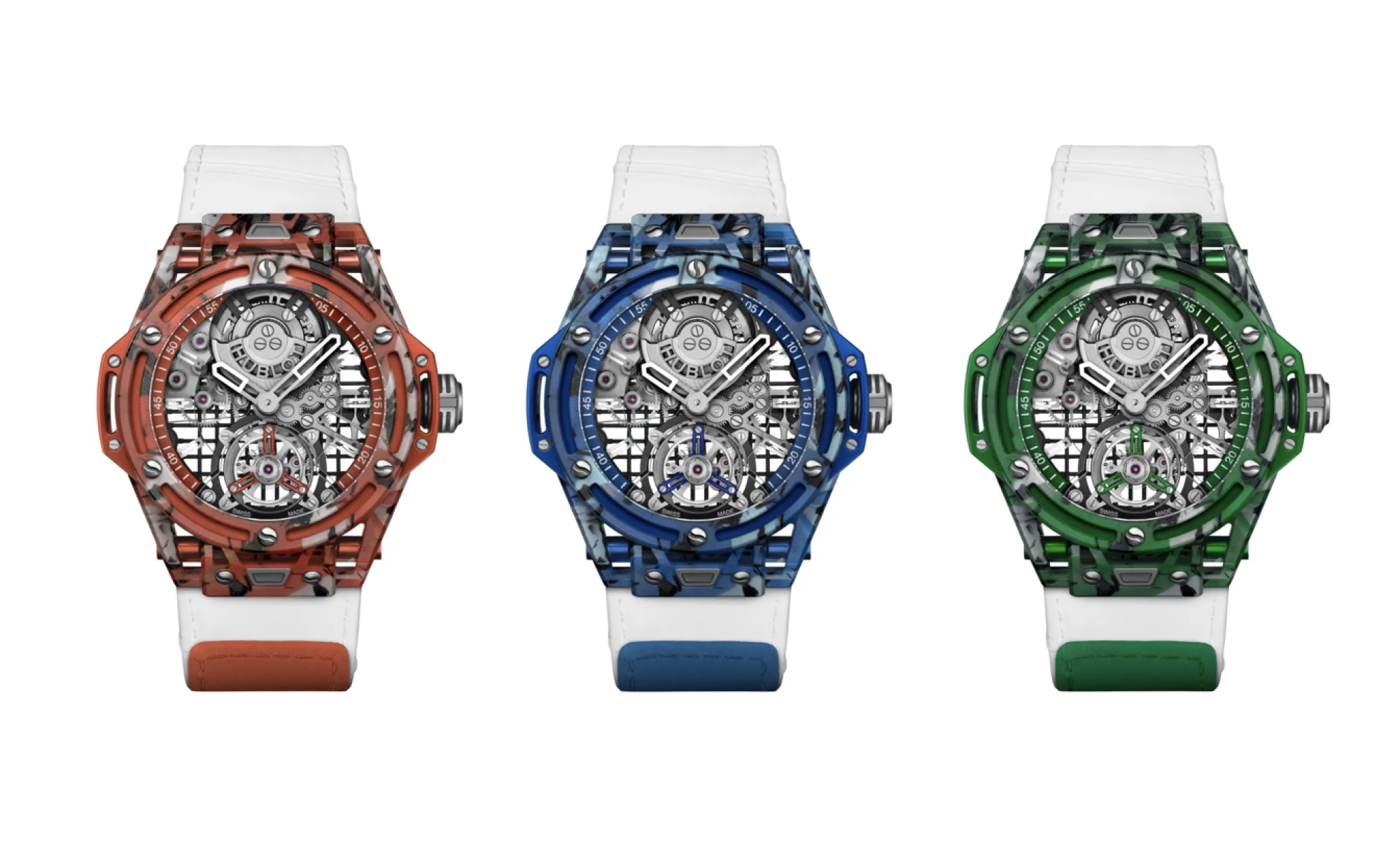 Umesto klasične osnovne ploče na koju se pričvršćuju komponente mehanizma, Hublotovi inženjeri su kreirali rešetkastu strukturu koja imitira žice na teniskom reketu. Linije debljine 0,55 mm deluju kao nepravilno raspoređene "žice", ali zapravo nisu pojedinačne isprepletene niti - već jedan jedinstveni komad izrezan laserom. Dizajn je izuzetno upečatljiv i deluje potpuno novo. Cena: 121.000 dolara.