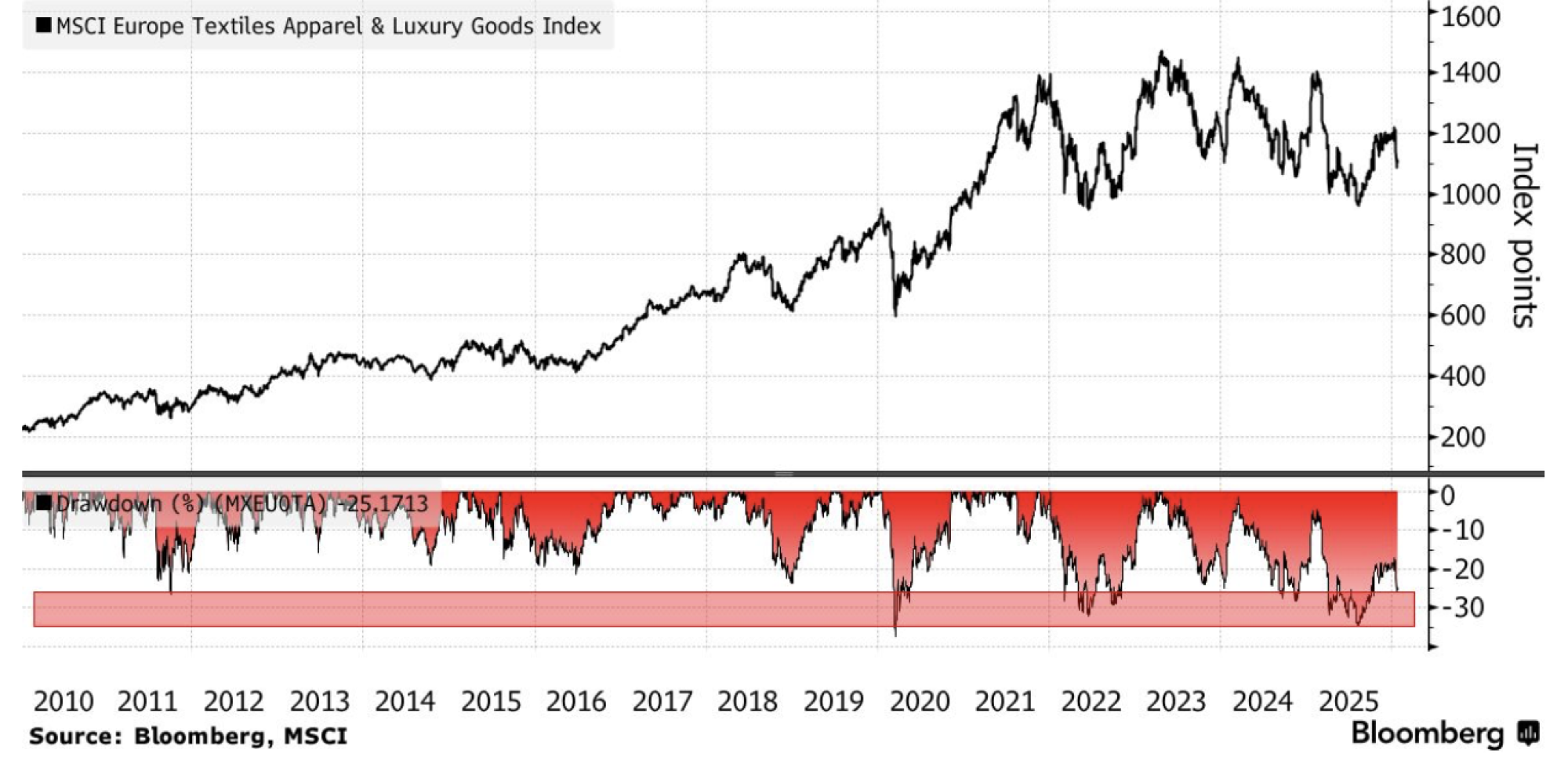 Za investitore je ulog veliki. Godinama su luksuzne akcije smatrane evropskim odgovorom na Big Tech: velike, brzo rastuće kompanije sa otpornim poslovnim modelima. Međutim, od naglog rasta kamatnih stopa 2022. i slabljenja kineske potražnje, sektor kao celina zaostaje za širim tržištem.