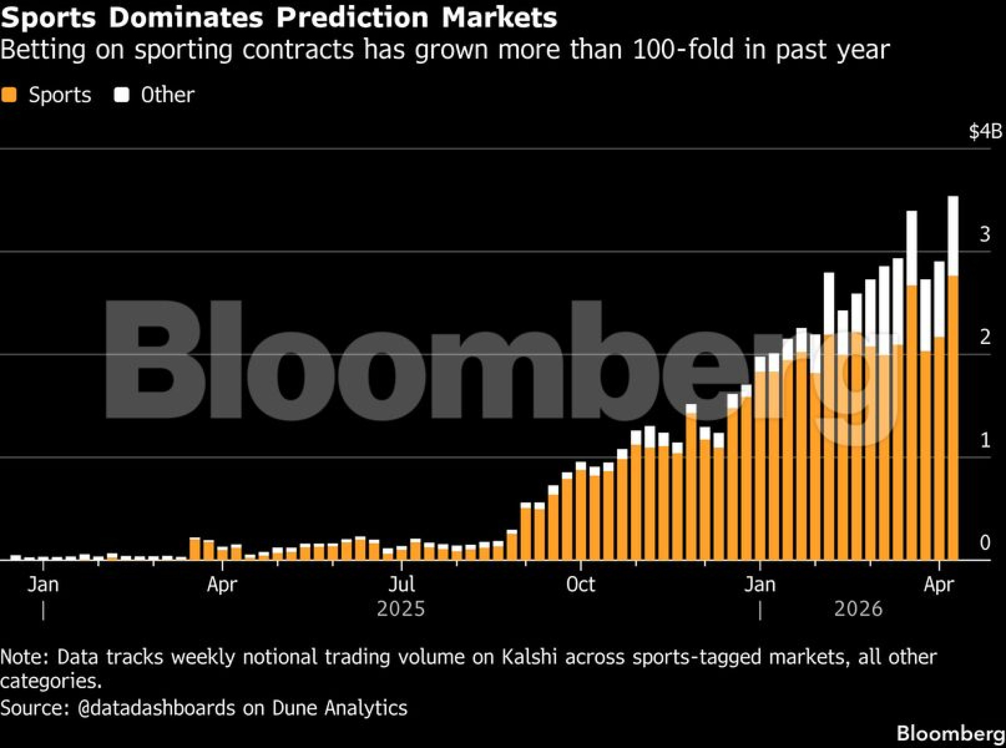 Tržišta prognoza vezana za stvarne događaje, poput ratova i izbora, beleže snažan rast. Kompanija Kalshi dominira američkim tržištem, pri čemu su sportske opklade činile oko 80 odsto ukupnog prometa prošlog meseca, prema procenama Bank of America. Ova banka procenjuje da bi tržište sportskih ugovora u SAD moglo dostići oko 1,1 bilion dolara godišnje.