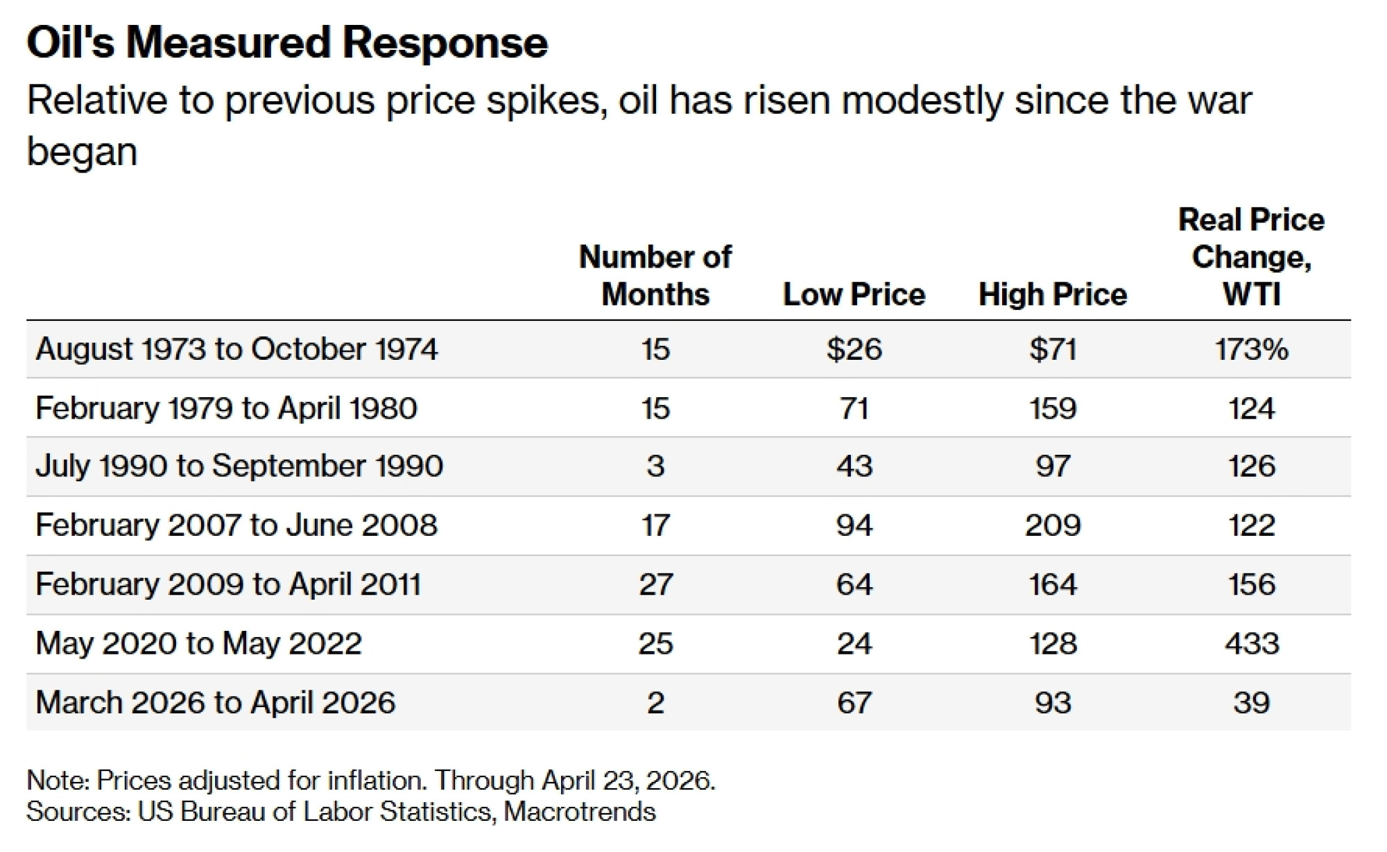 To takođe može objasniti zašto je, u istorijskim okvirima, reakcija tržišta nafte bila relativno umerena. Prilagođeno inflaciji, cena nafte gotovo se utrostručila 1973–1974. i više nego udvostručila 1979–1980., što je daleko veći skok od porasta od oko 40 odsto od početka ovog rata. Uz to, terminski ugovori za naftu su u izraženoj backwardation situaciji, što znači da je razlika između današnje cene i očekivane tržišne cene za nekoliko meseci veća nego inače. Tržište predviđa značajan pad, bliže 70 dolara po barelu do početka sledeće godine, uprkos nedostatku bilo kakvih opipljivih dokaza da se ovaj sukob bliži kraju.