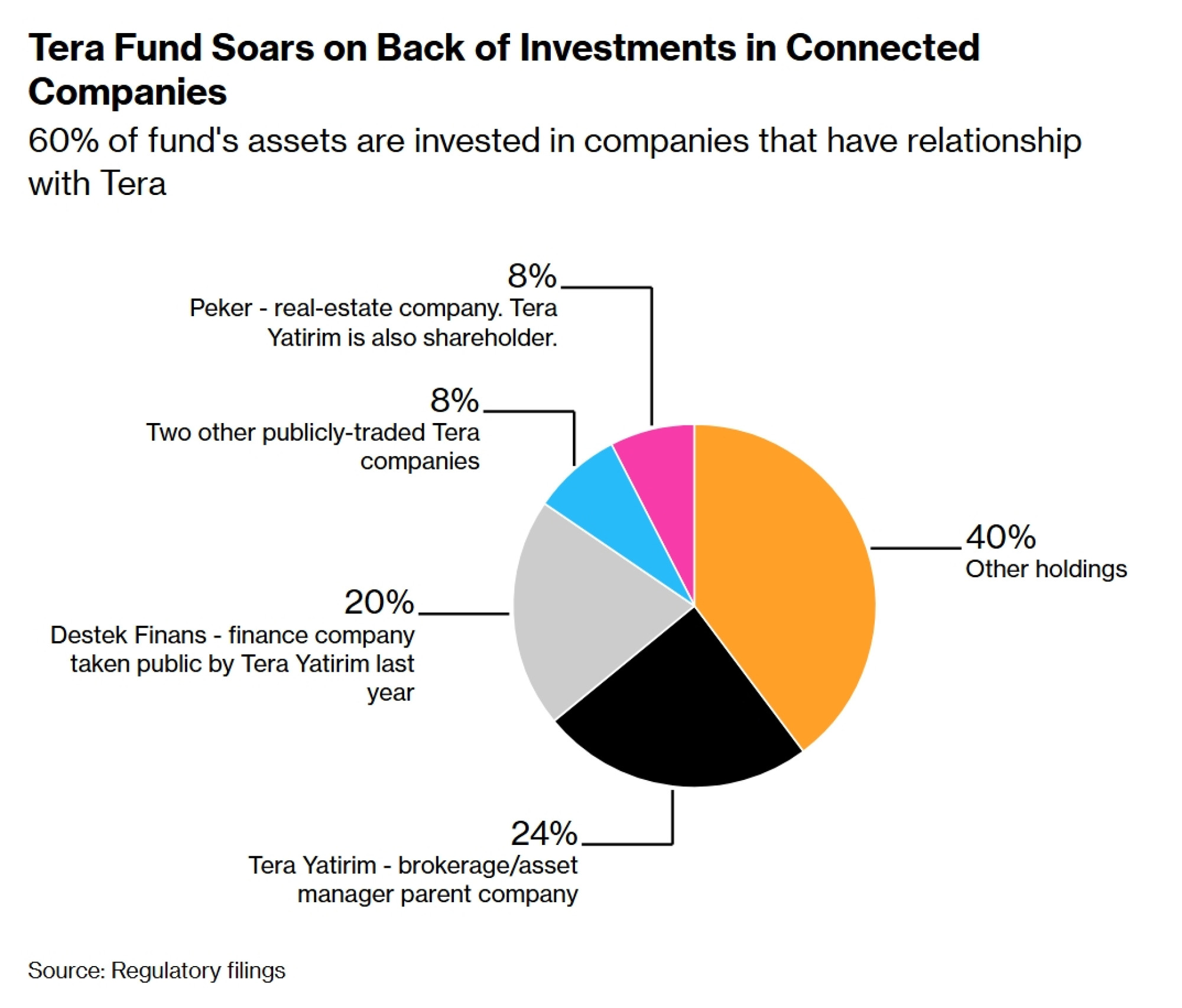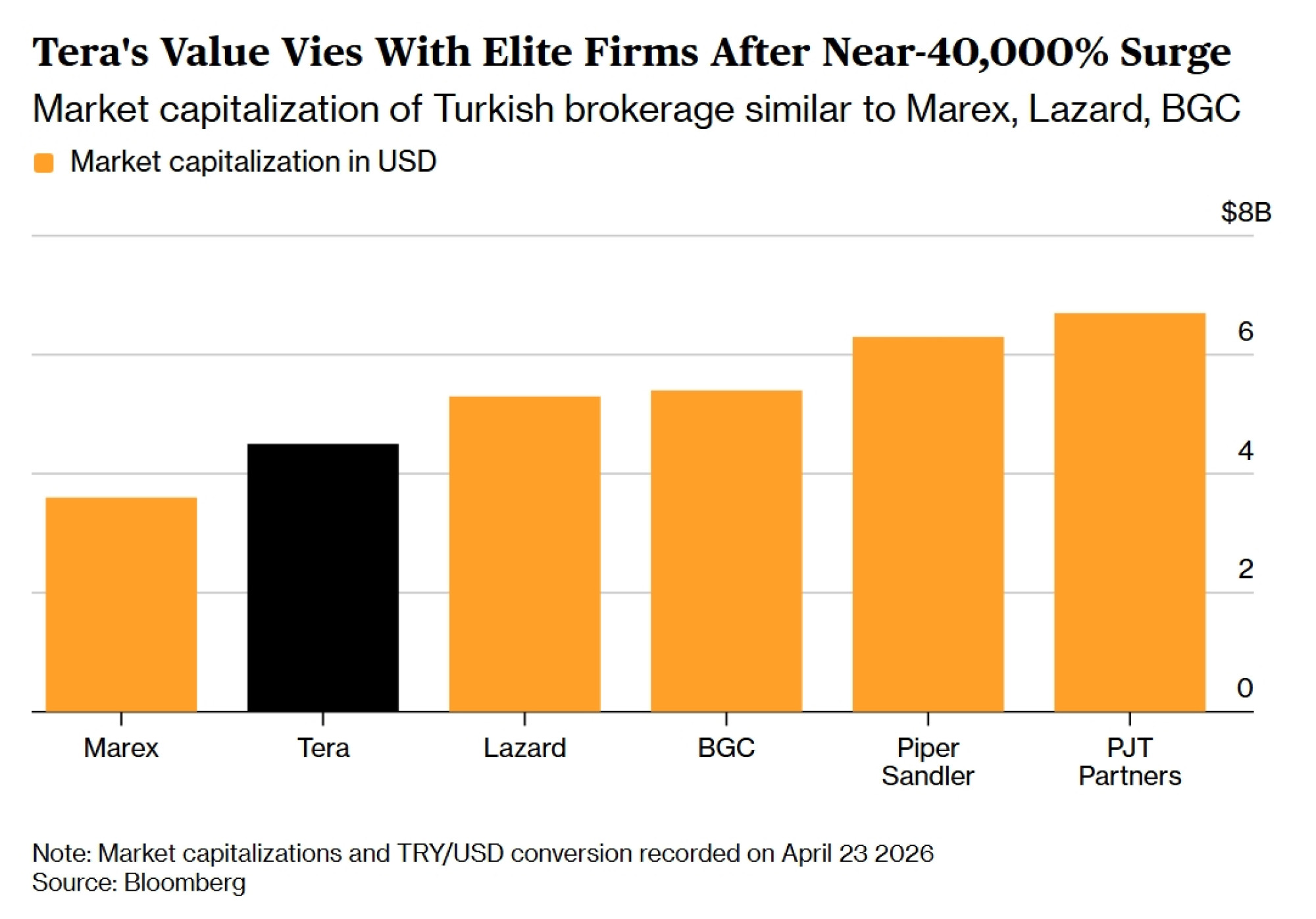 Do danas nisu svi detalji u potpunosti razjašnjeni, ali se pojavila slika kompanije koja preduzima nekonvencionalne poteze koji su, prema stručnjacima za finansije koji su analizirali trgovanje, očigledno podstakli rast vrednosti njenih sopstvenih akcija. Iako su akcije ove nedelje počele da padaju, Tera i dalje ima tržišnu vrednost od 4,5 milijardi dolara, što je čini jednom od najvrednijih turskih kompanija uprkos tome što ima samo oko 130 zaposlenih. U pojedinim trenucima ove godine kompanija je vredela više od globalnih igrača sa hiljadama zaposlenih, kao što su Lazard Inc. i BGC Group Inc..