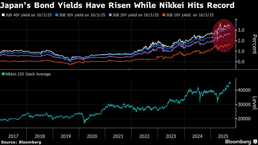 Japanski indeks Nikkei 225 skočio je pet odsto na istorijski maksimum nakon što je Sanae Takaichi postala favorit za novu premijerku Japana. Jen je oslabio gotovo dva odsto na 150 jena za dolar, dok je u odnosu na evro pao na rekordno nizak nivo. Obveznice sa dužim rokovima dospeća zabeležile su najveći pad u poslednjih nekoliko meseci zbog zabrinutosti da bi Takaichi mogla povećati zaduživanje radi finansiranja poreskih olakšica. Njena iznenađujuća pobeda na unutarstranačkim izborima tokom vikenda umanjila je očekivanja da bi Banka Japana mogla povećati kamatne stope već ovog meseca, dok su istovremeno porasle bojazni od rasta duga zbog novih stimulativnih mera. Terminski ugovori na kamatne stope sada pokazuju oko 25 odsto verovatnoće povećanja, u odnosu na 60 odsto pre izbora Liberalno-demokratske partije.