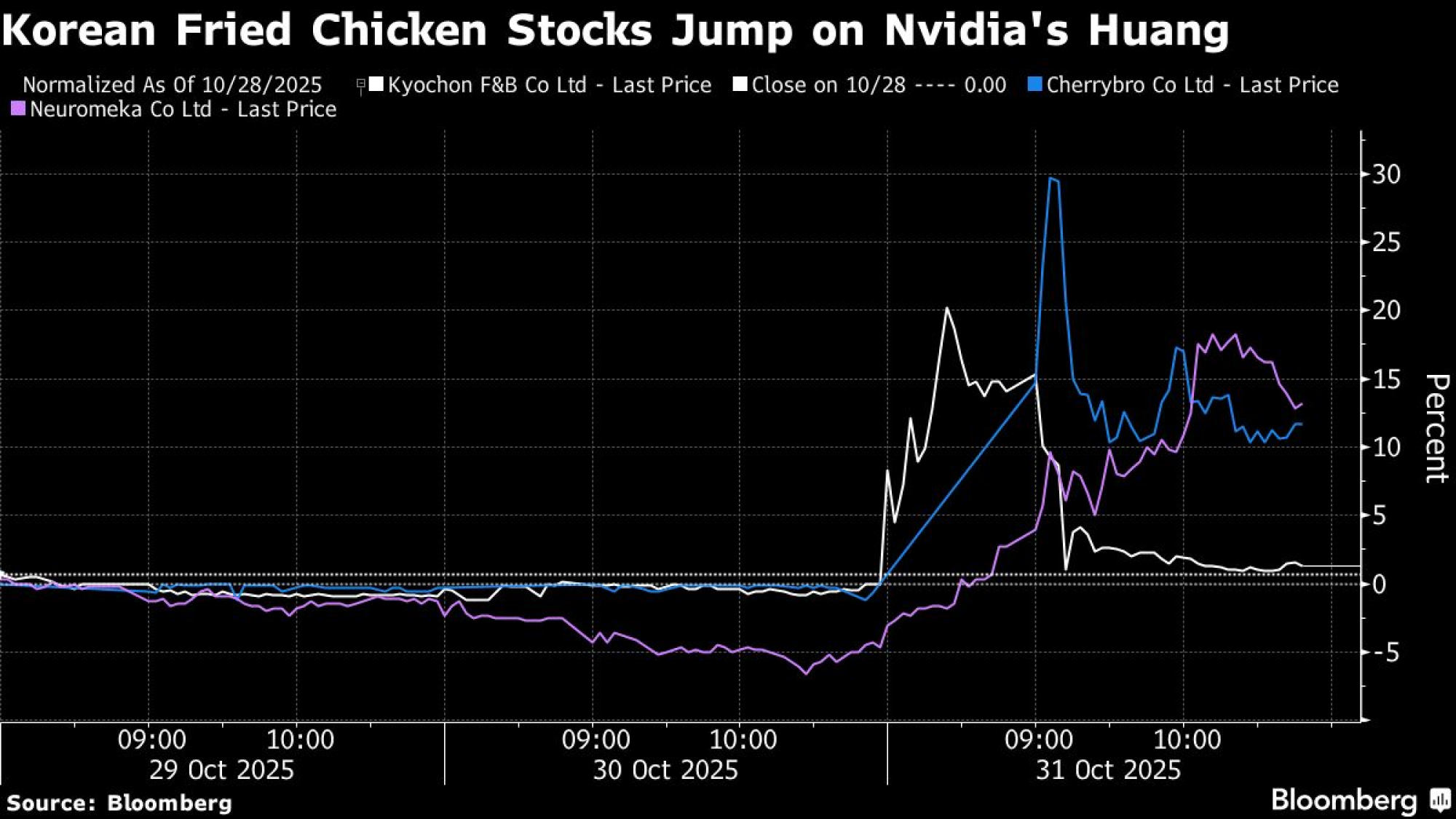 Jensen Huangov "dodir Midasa" proširuje se i na korejsku prženu piletinu. Fotografije i video snimci izvršnog direktora Nvidije, Jensena Huanga, kako uživa u pivu i prženoj piletini u lokalnom restoranu Kkanbu Chicken u Seulu, u društvu predsednika Samsunga, Jay Y. Leea, i izvršnog predsednika Hyundaija, Chung Euisuna, postali su viralni, a sada investitori podižu akcije kompanija koje bi mogle imati koristi od ovog trenutnog interesovanja.