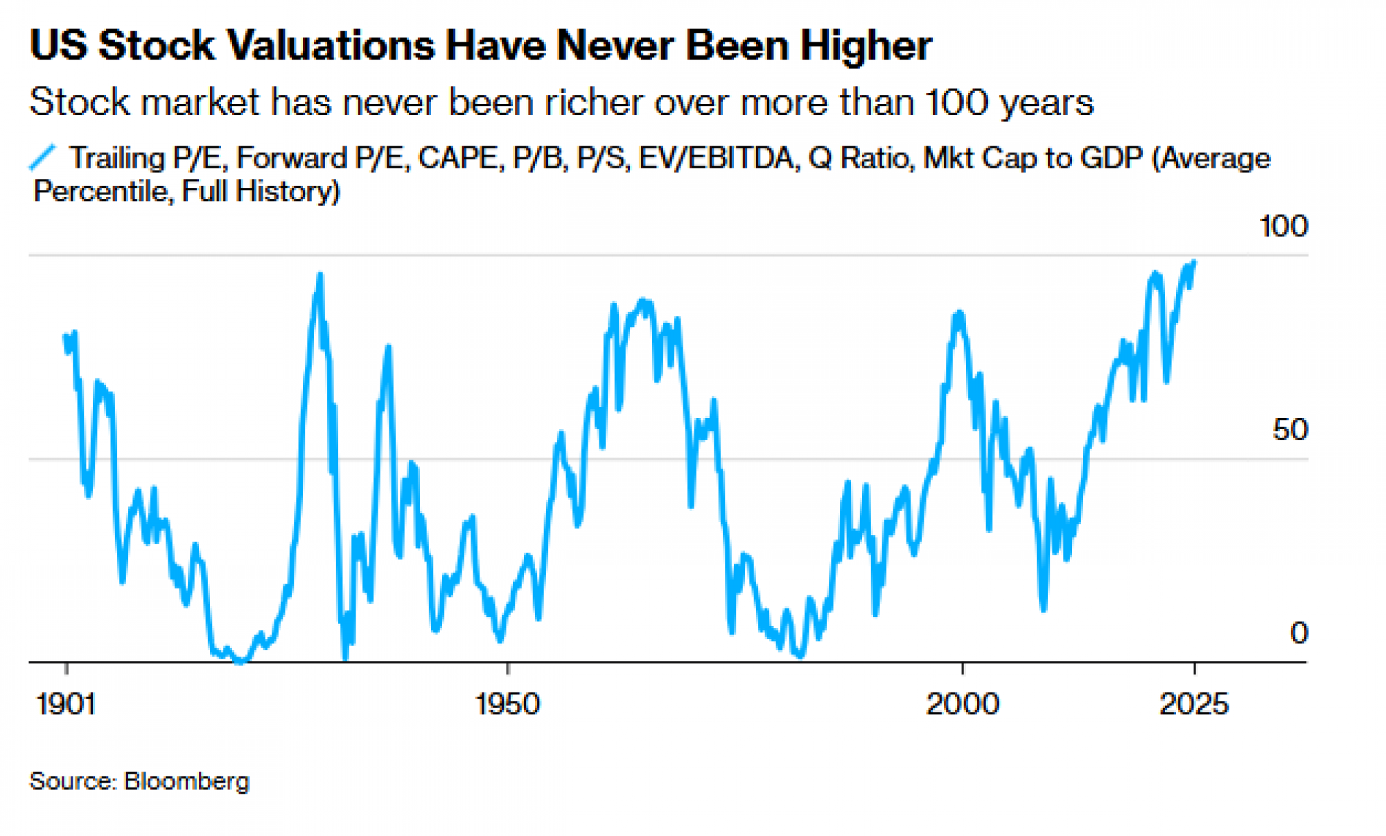 Pad bi mogao biti strm. Valuacije ne otkrivaju kada će tržište pasti, ali mogu prilično dobro pokazati koliko bi pad mogao biti dubok. Kombinovani prosek nekoliko pokazatelja valuacije američkog tržišta akcija trenutno je rekordan, prema podacima koji se prate više od sto godina. Ako bi tržište palo između 30 i 50 procenata, kao što se događalo i u ranijim periodima ekstremno visokih valuacija, to ne uliva mnogo poverenja onima koji danas ulažu u akcije.