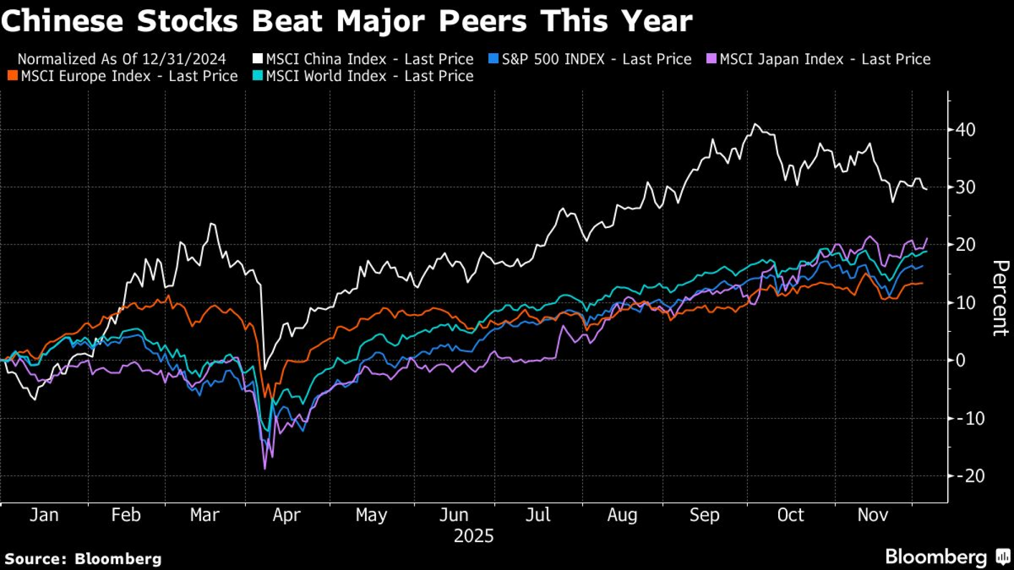Percepcija investitora prema Kini preokrenula se od skepticizma prema priznanju da to tržište može ponuditi jedinstvenu vrednost kroz tehnološki napredak. MSCI China Index skočio je za oko 30 odsto ove godine, nadmašivši S&P 500 najviše od 2017. i dodavši tržištu 2,4 biliona dolara vrednosti. Kako su većinu priliva podstakli pasivni fondovi, raste nada da bi povratak aktivnih menadžera mogao voditi sledeću fazu oporavka.