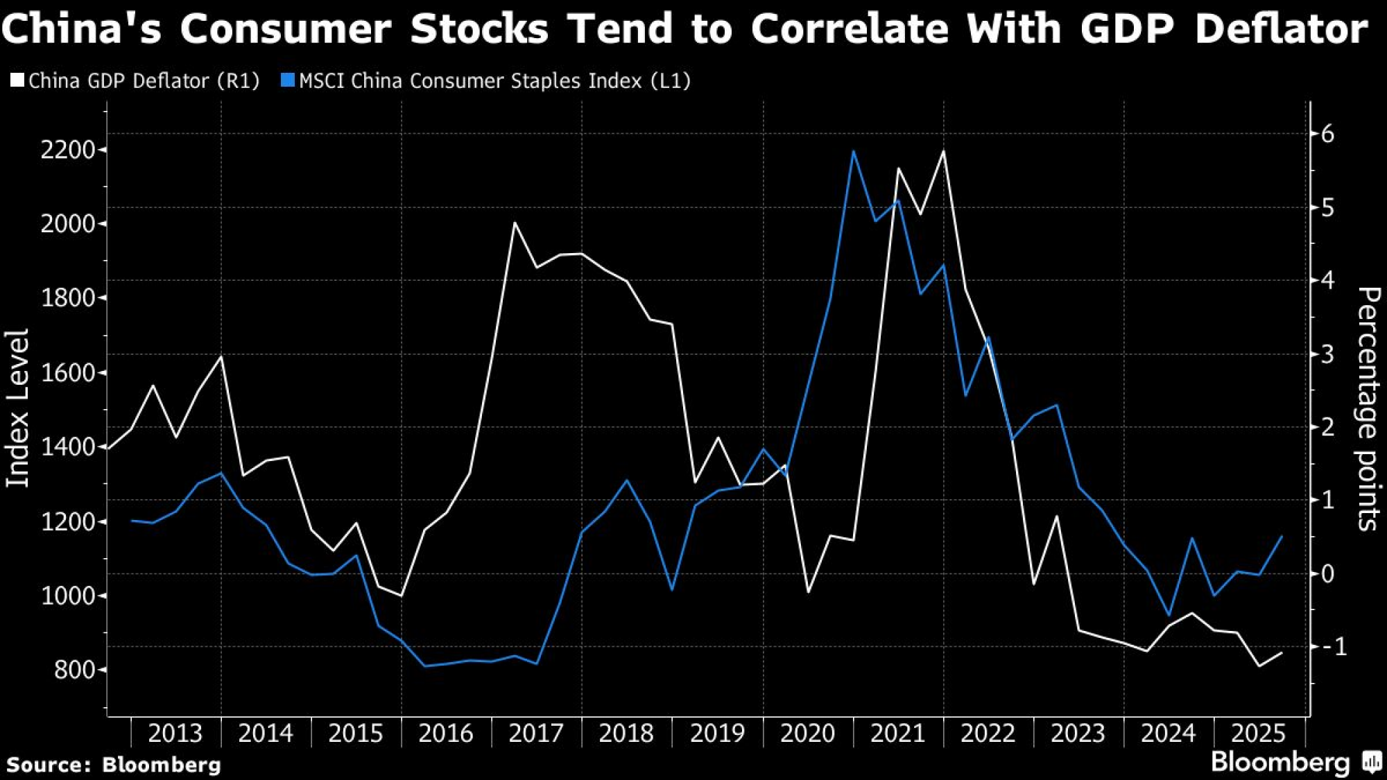 Kineske akcije u sektoru potrošnje obično koreliraju sa deflatorom BDP-a | Bloomberg