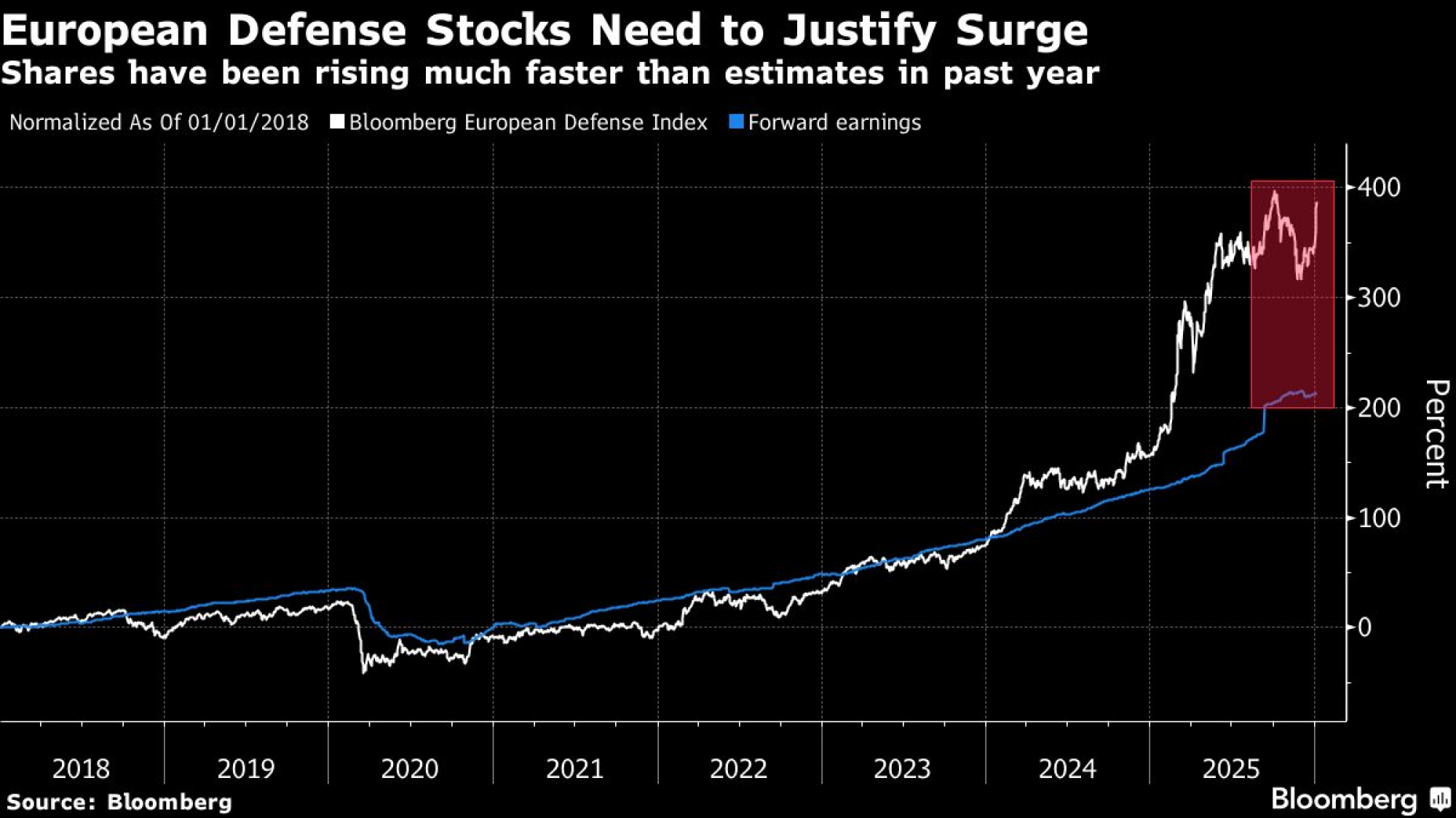 Ipak, obnovljeni entuzijazam investitora u pogledu odbrambenog sektora doprineo je da je vrednost akcija tog sektora bude viša u odnosu na ostatak evropskog tržišta. Visoka očekivanja ulagača kada je reč o rastu zarade kompanija predstavljaju rizik za tržište akcija koji se materijalizovao prošle godine, usporivši rast u drugoj polovini godine. U međuvremenu, primirje u Ukrajini bi takođe moglo uticati na to da investitori donekle izgube interesovanje.