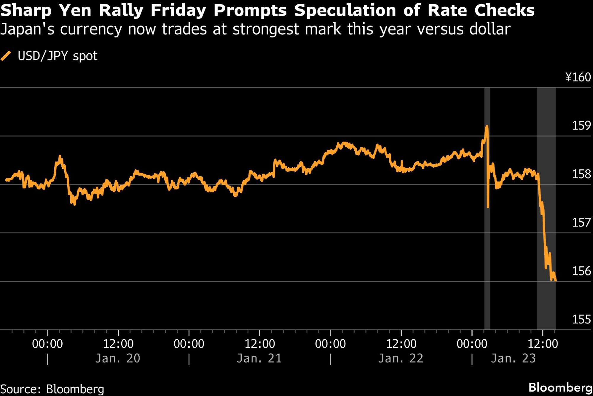 Preokret u padu jena započeo je nakon što je guverner Banke Japana Kazuo Ueda u petak završio konferenciju za novinare posle odluke o monetarnoj politici. Nekoliko sati kasnije, Atsushi Mimura, najviši zvaničnik Ministarstva finansija zadužen za jen, odbio je da komentariše da li je vlada intervenisala kako bi podržala valutu.
