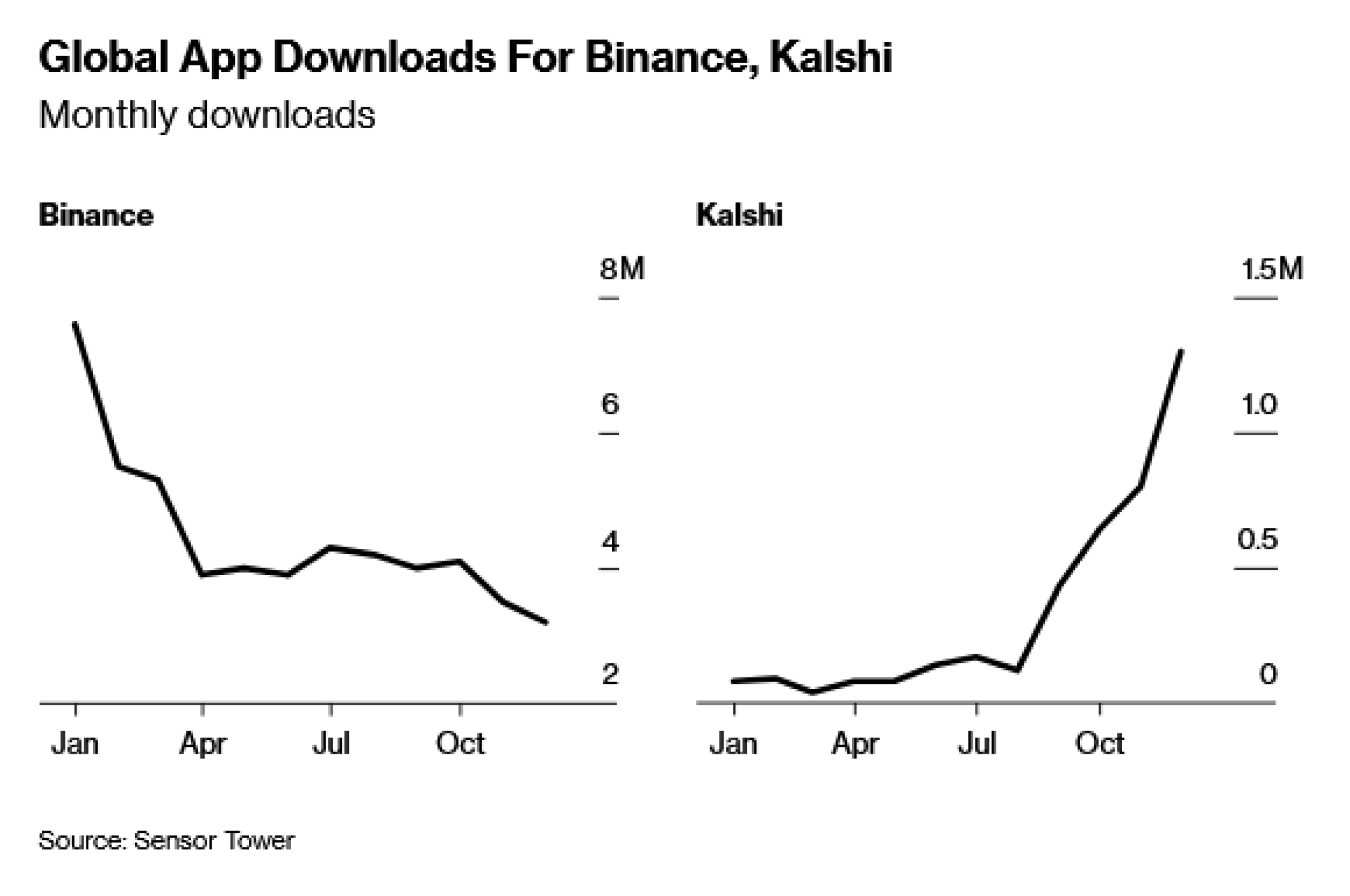 Ova promena vidljiva je i u brojkama. Dok su preuzimanja aplikacija kripto-berzi prošle godine naglo pala, tržišta predviđanja kretala su se u suprotnom smeru. Prema podacima kompanije za tržišnu analitiku Sensor Tower, broj instalacija Polymarketa porastao je sa 30.000 u januaru na više od 400.000 do decembra. Instalacije Kalshija su u istom periodu porasle sa 80.000 na 1,3 miliona. Binance, najveća svetska kripto berza, zabeležila je pad broja preuzimanja veći od 50 odsto.
