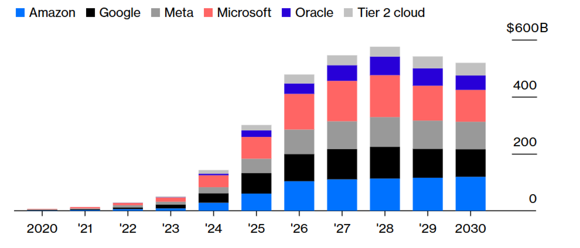 Veštačka inteligencija je već snažna sila na berzi. Velike tehnološke kompanije koje su najdublje uključene - Alphabet Inc., Amazon.com Inc., Meta, Microsoft Corp., Nvidia Corp. i Oracle Corp. - čine oko četvrtine skoro 60 biliona dolara tržišne kapitalizacije indeksa S&P 500. Takođe su na putu da dominiraju i tržištima duga, dok se utrkuju da finansiraju neviđene kapitalne izdatke. Na primer, posao kompanije Meta od 30 milijardi dolara za finansiranje svog data centra u Luizijani podrazumevao je najveću pojedinačnu korporativnu obveznicu ikada emitovanu.