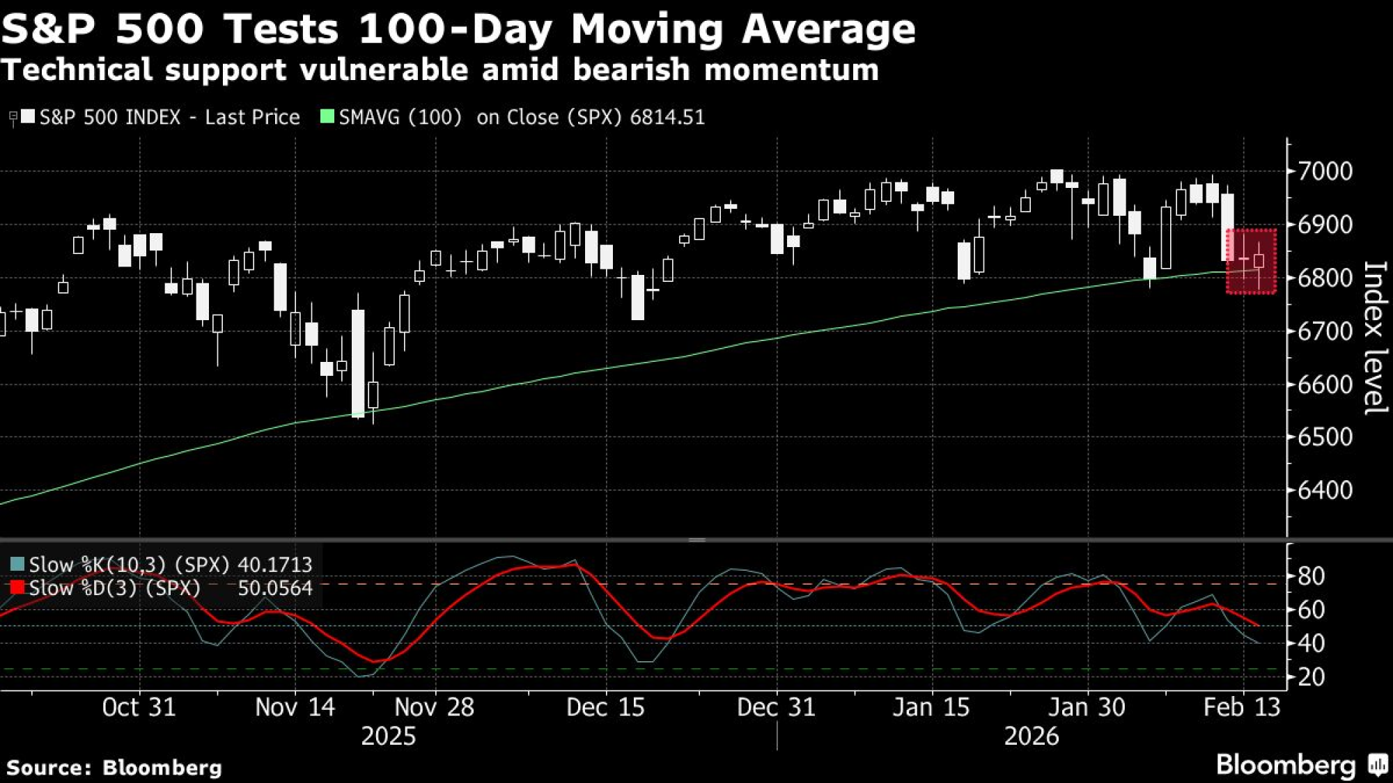 S&P 500 testira 100-dnevni pokretni prosek - tehnička podrška ugrožena usled pokazatelja koji ukazuju na pad tržišta | Bloomberg